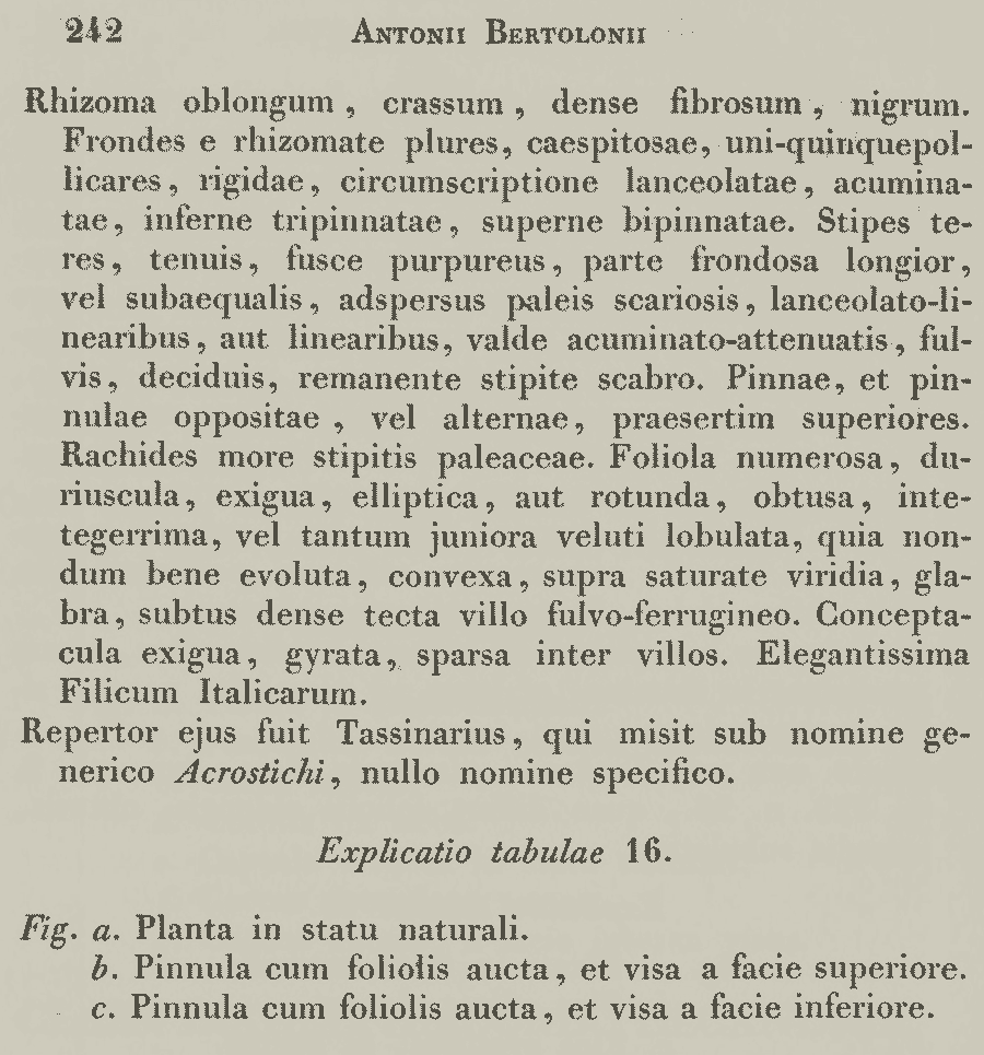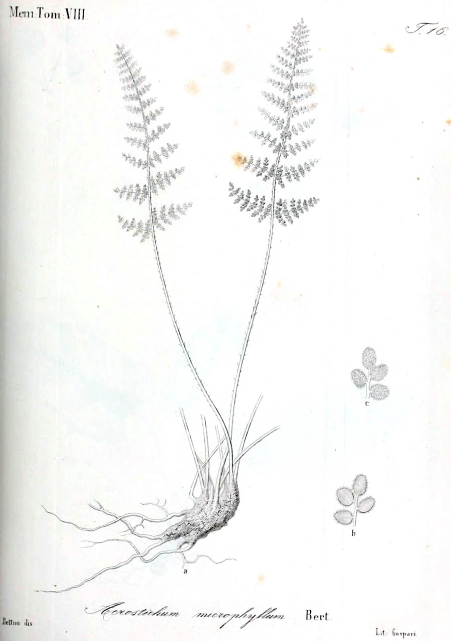 | Andriy Kovalchuk | Описание и иллюстрация Acrostichum microphyllum Bertol. (Memorie della Reale Accademia delle Scienze dell'Istituto di Bologna 8: 241, t. 16):