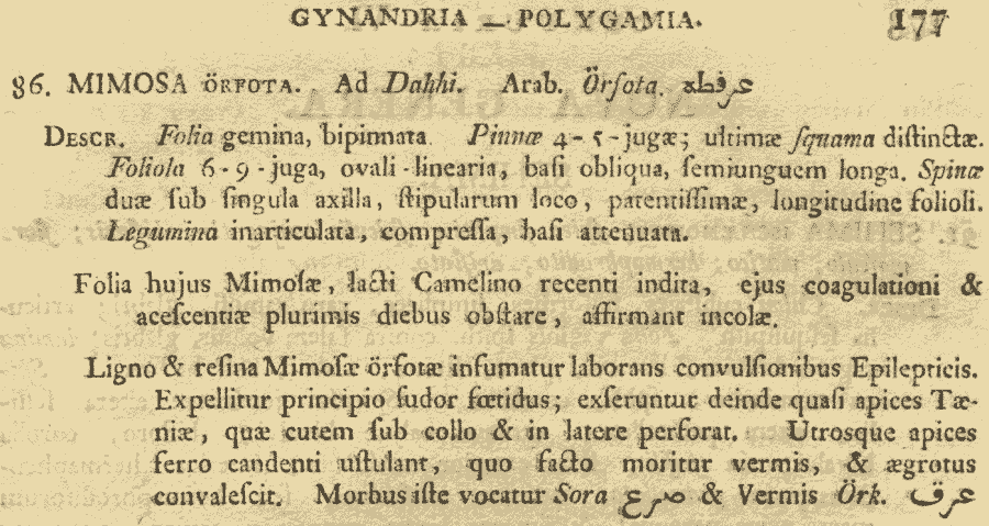 Протолог Mimosa oerfota Forssk. (Flora Aegyptiaco-Arabica 177. 1775 [1 Oct 1775]):