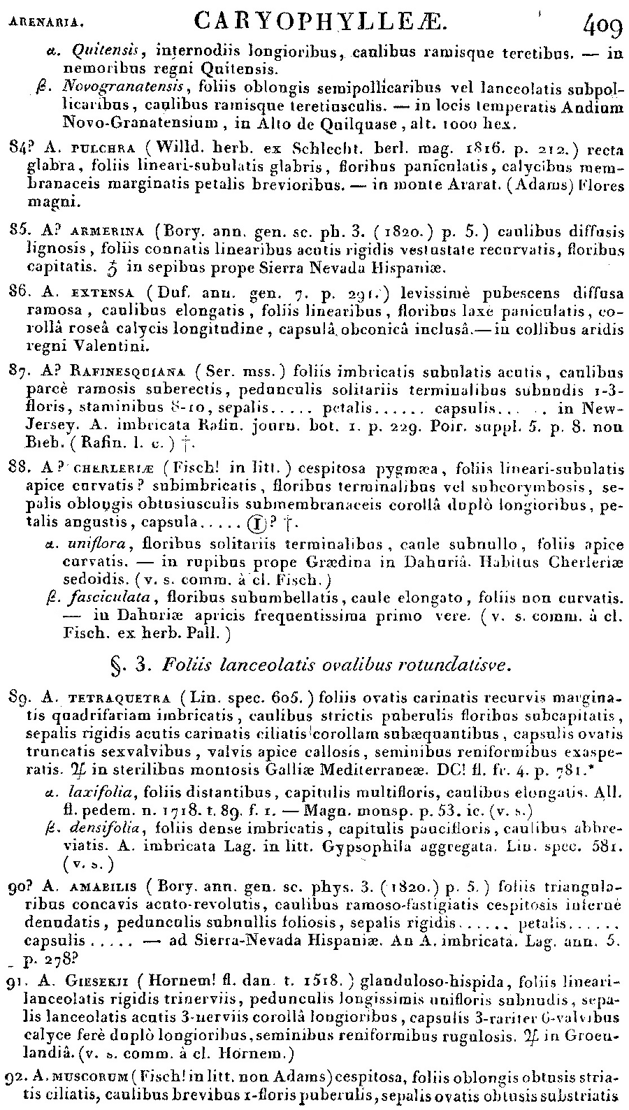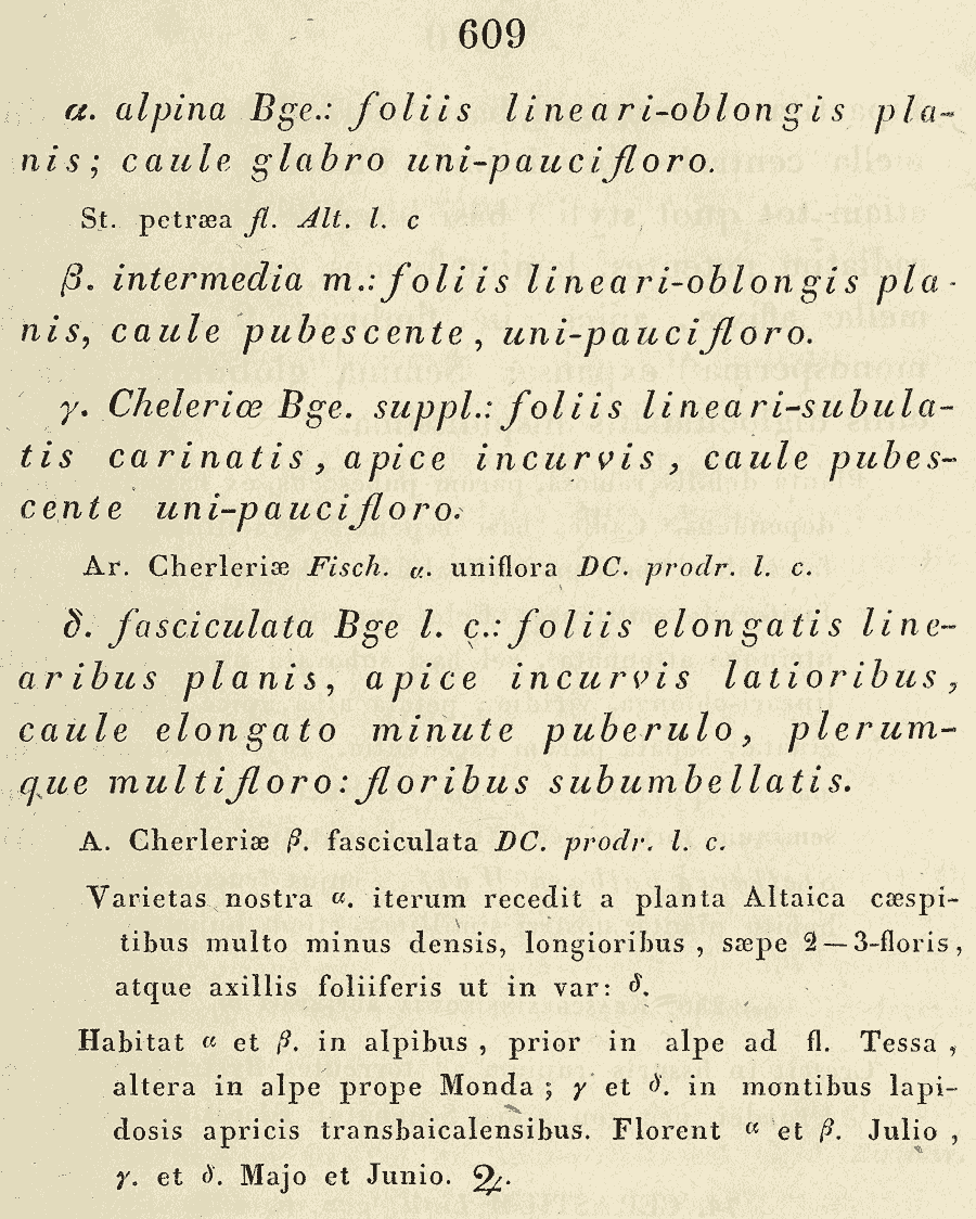 Протолог Arenaria cherleriae Fisch. ex Ser. (Prodromus Systematis Naturalis Regni Vegetabilis [A. P. de Candolle] 1: 409. 1824):