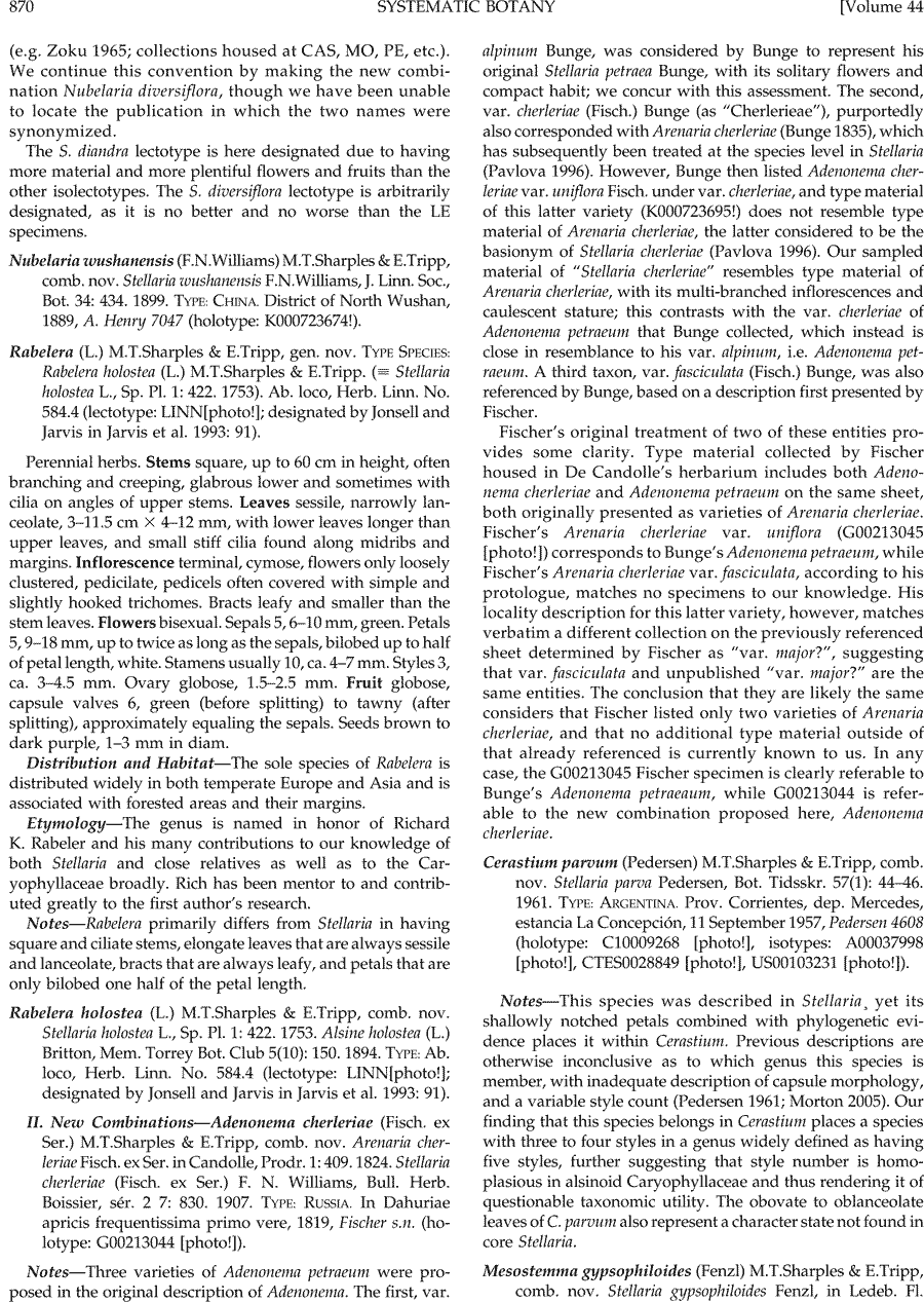 | Andriy Kovalchuk | Обнародование комбинации Adenonema cherleriae (Fisch. ex Ser.) M.T. Sharples & E.A. Tripp (Systematic Botany 44(4): 870. 2019):