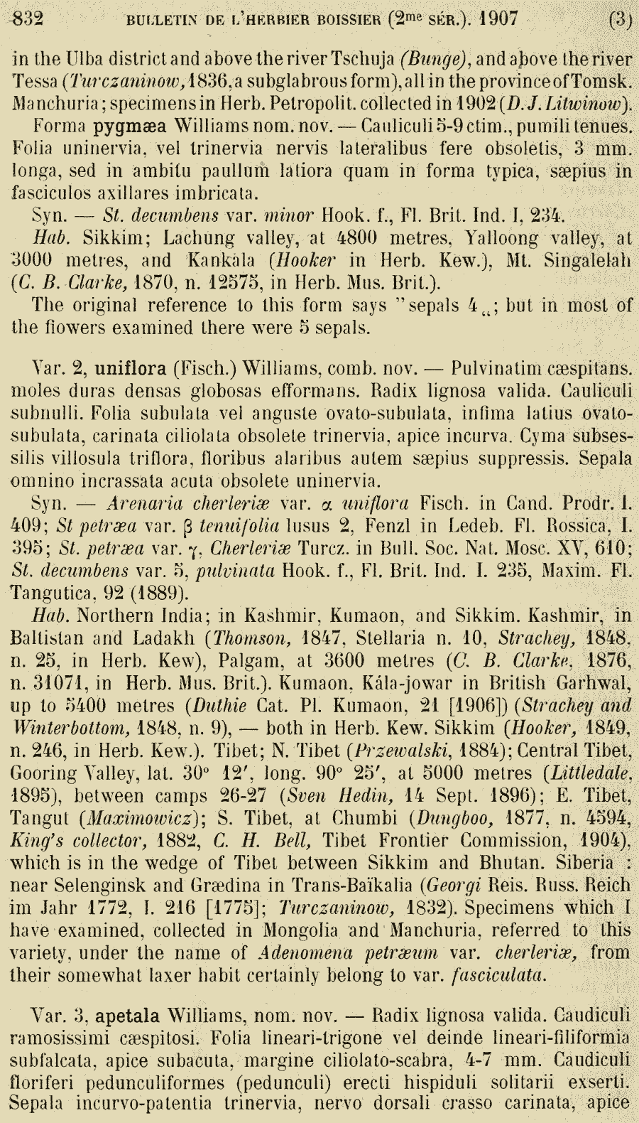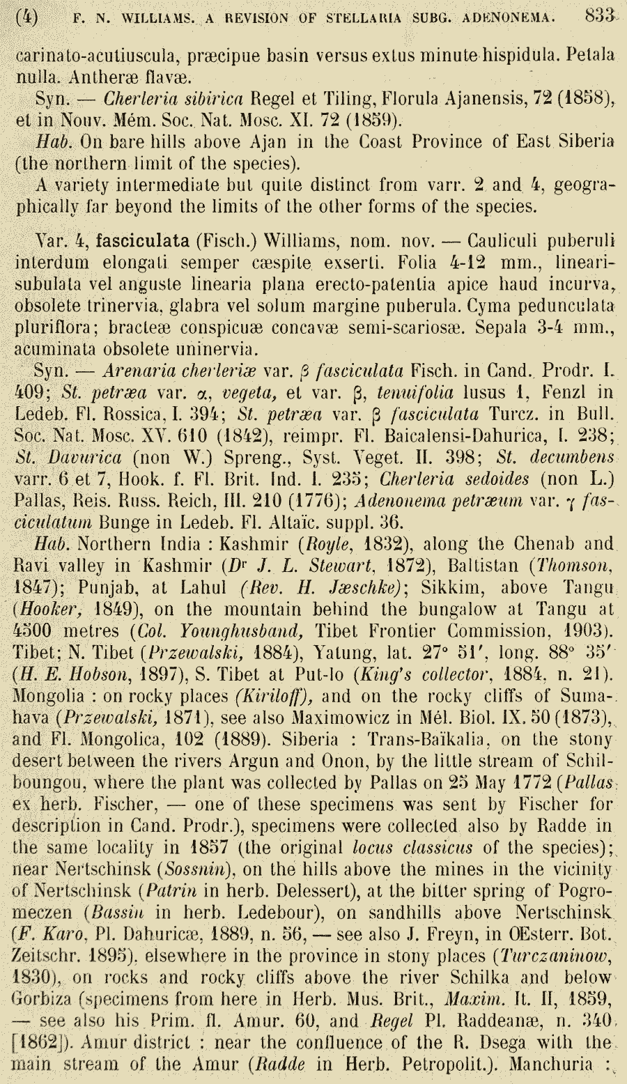 | Andriy Kovalchuk | Обнародование комбинации Stellaria cherleriae (Fisch. ex Ser.) F.N. Williams (Bulletin de l'Herbier Boissier ser. 2, 7: 830. 1907):