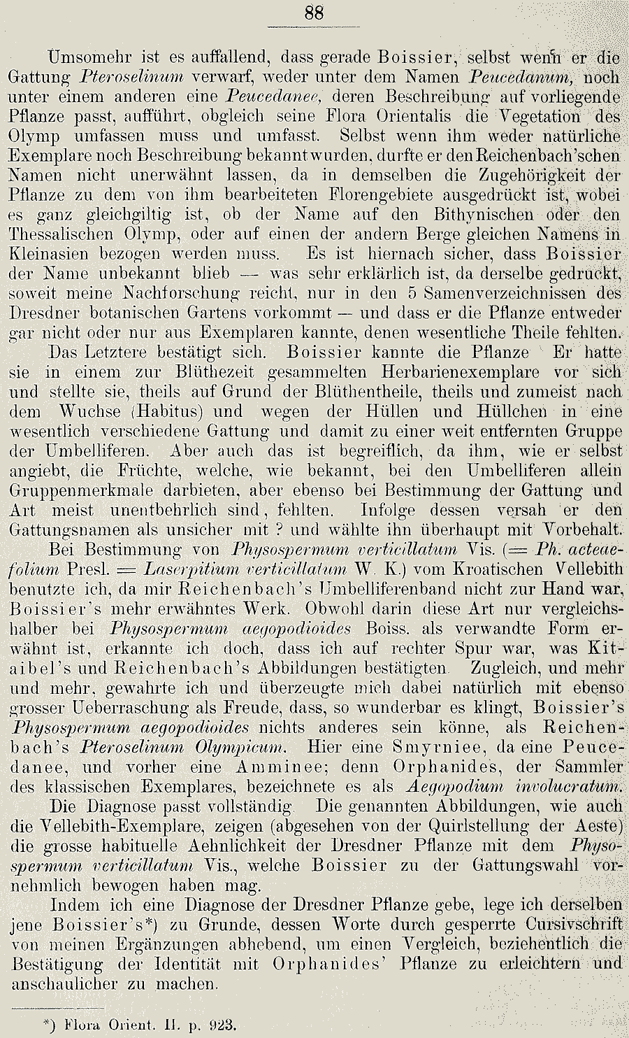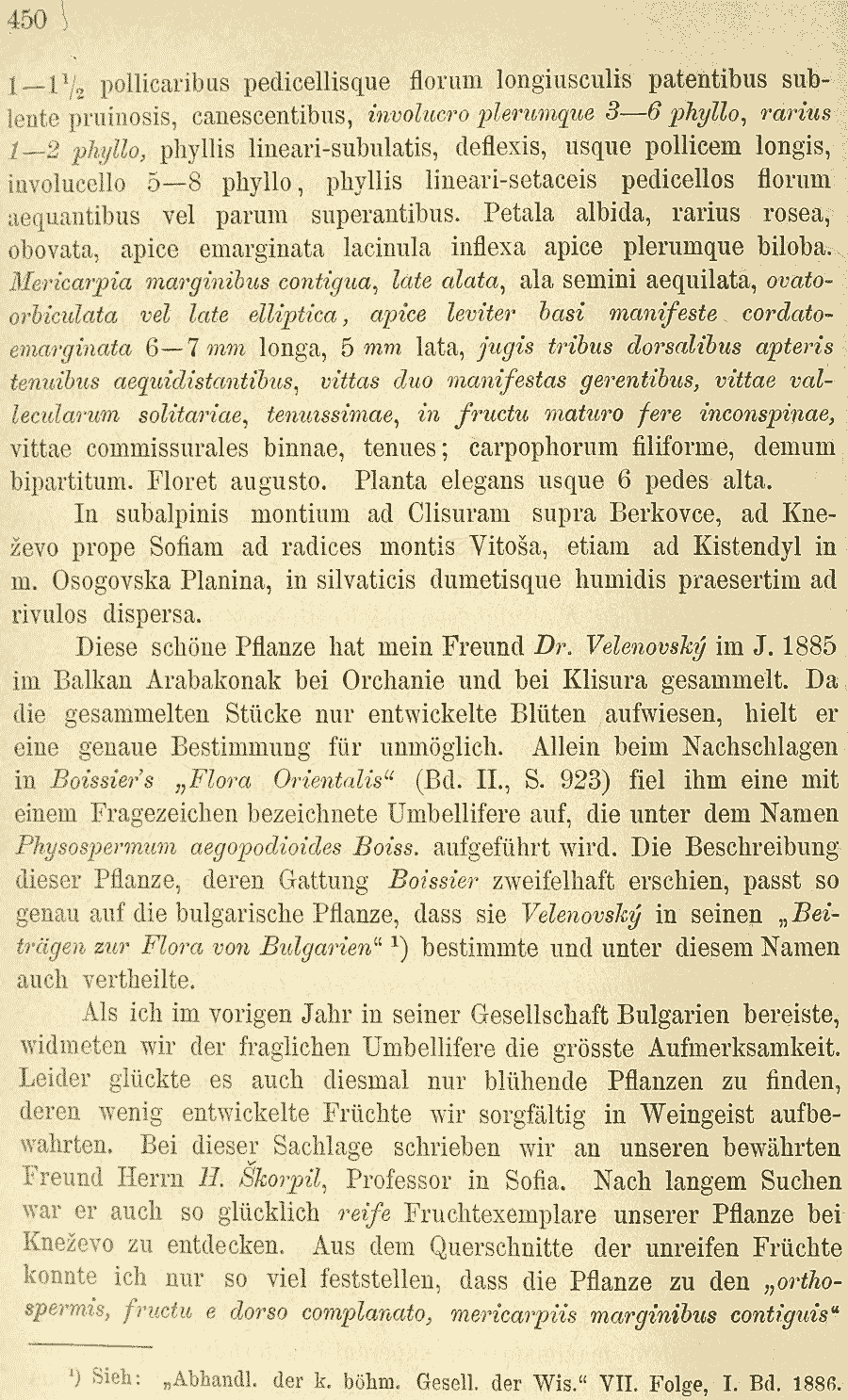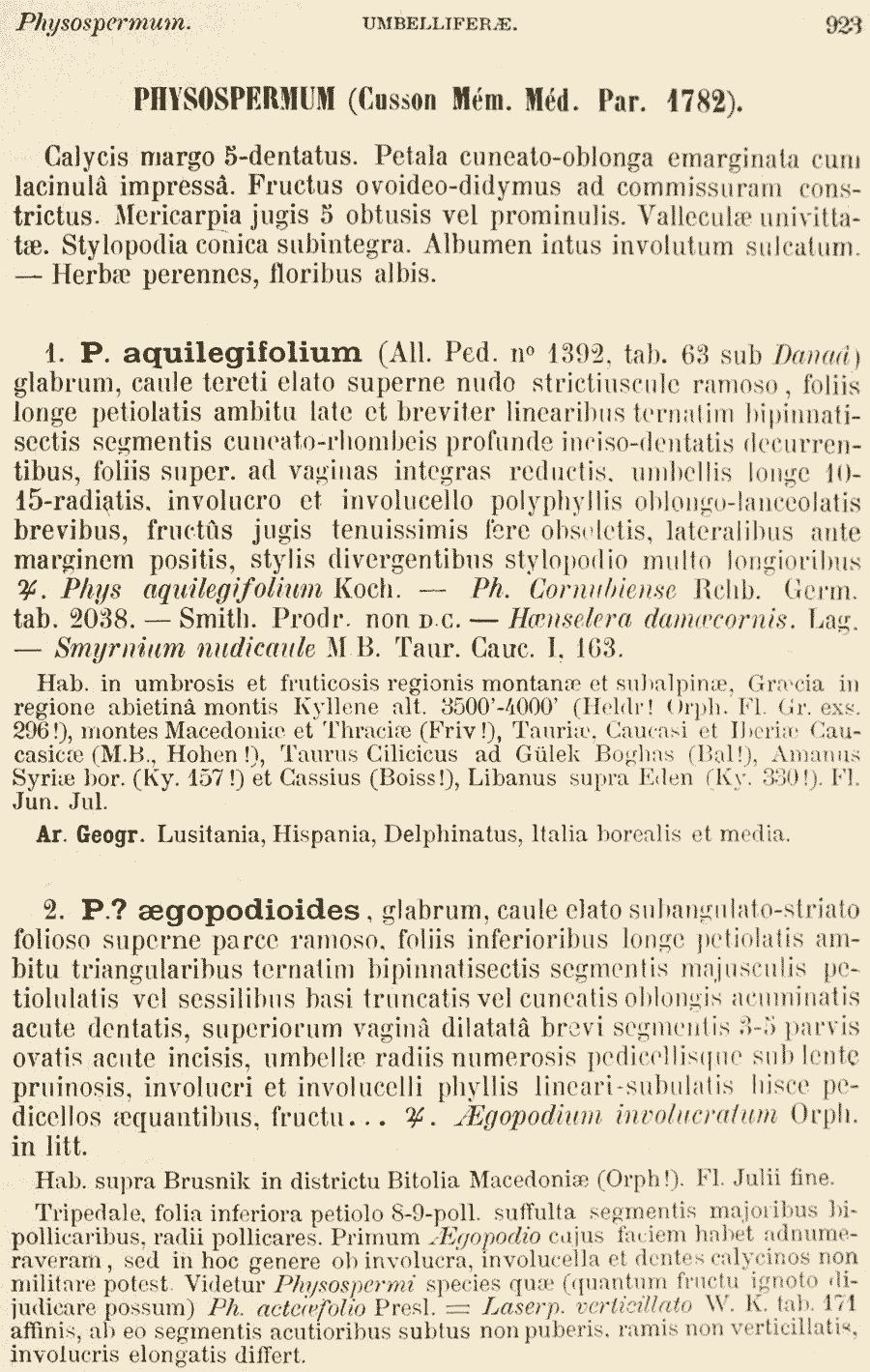 Протолог Physospermum aegopodioides Boiss. и обнародование комбинации Aegopodium involucratum Orphan. ex Boiss., nom. inval. (Flora Orientalis [Boissier] 2: 923. 1872):