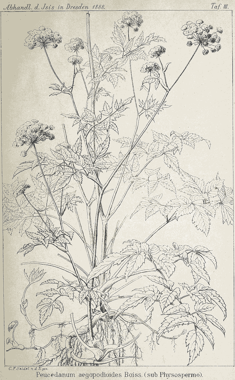 | Andriy Kovalchuk | Обнародование комбинации Peucedanum aegopodioides (Boiss.) Seidel (Sitzungsberichte und Abhandlungen der Naturwissenschaftlichen Gesellschaft Isis in Dresden 1888 (Abh. 8): 86. 1889):
