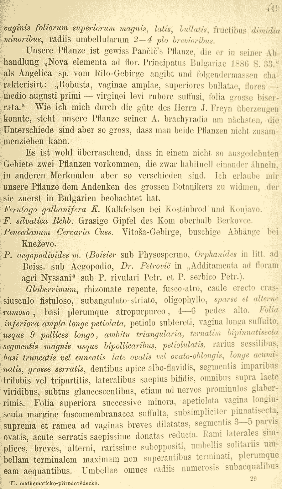 | Andriy Kovalchuk | Обнародование комбинации Peucedanum aegopodioides (Boiss.) Vandas (Sitzungsberichte der Königlichen Böhmischen Gesellschaft der Wissenschaften. Mathematisch-naturwissenschaftliche Classe / Věstník Královské české společnosti náuk. Třída mathematicko-přírodovědecká 1888: 449. 1889):