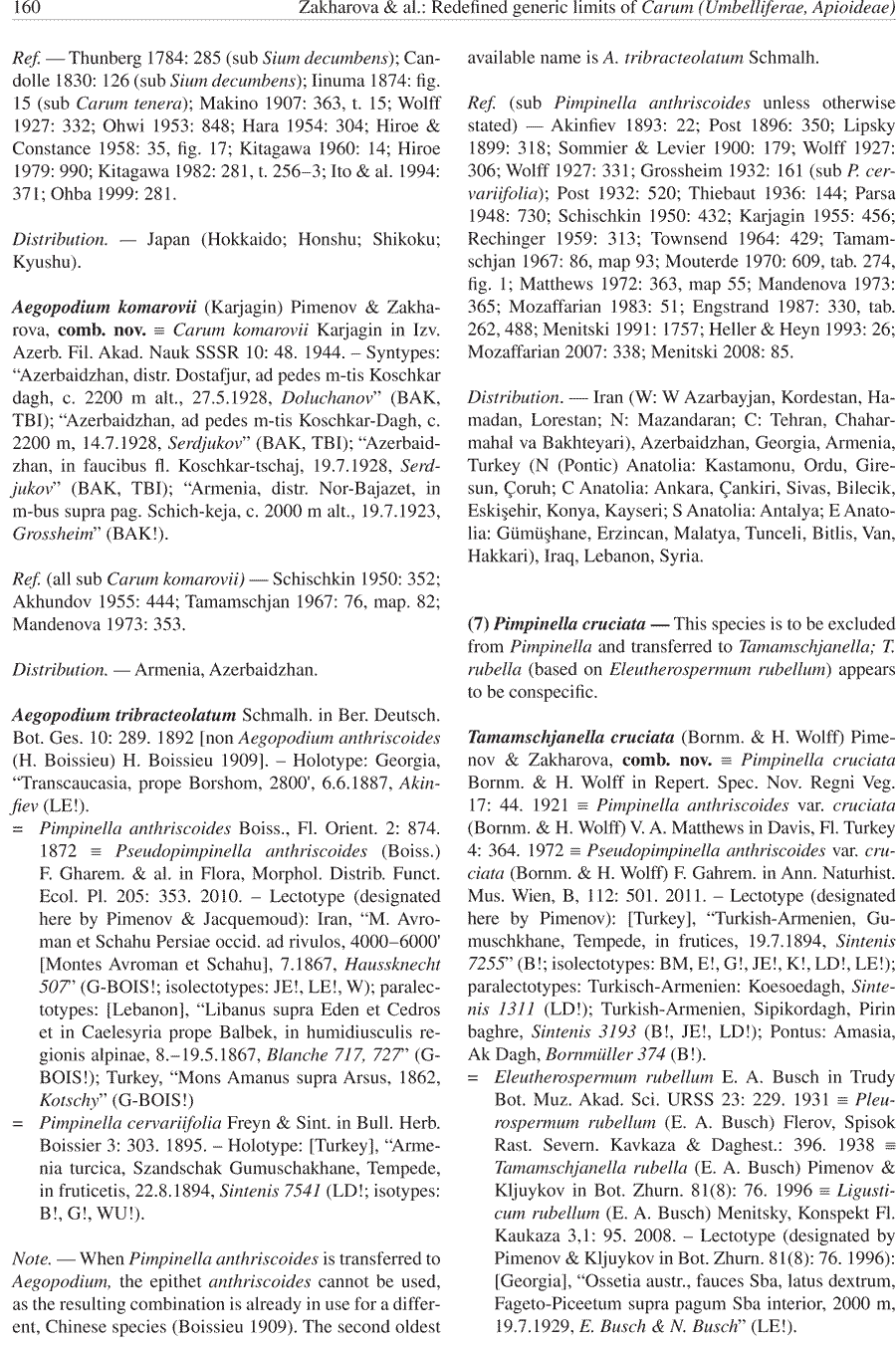 | Andriy Kovalchuk | Обнародование комбинации Aegopodium komarovii (Karjagin) Pimenov & Zakharova (Willdenowia 42(2): 160. 2012):