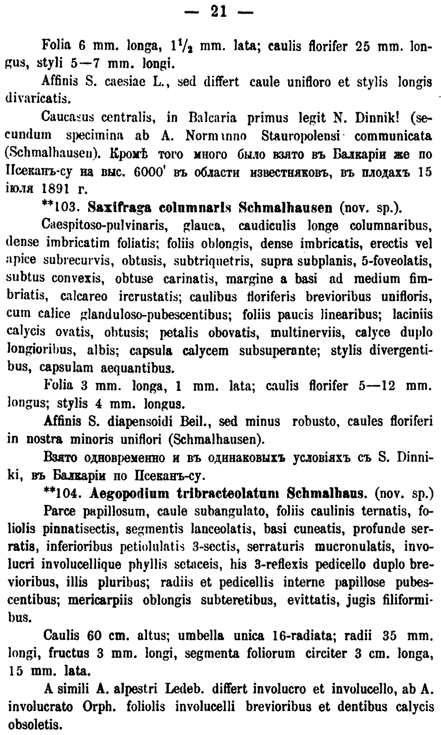 | Andriy Kovalchuk | В ряде источников место обнародования названия Aegopodium tribracteolatum Schmalh. указывается как Известия Кавказского отдела Императорского Русского Географического общества 15 (Прил. 2): 22. 1892(1893?):