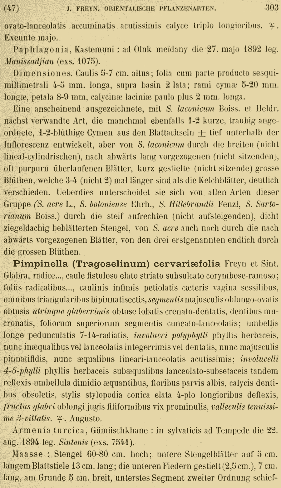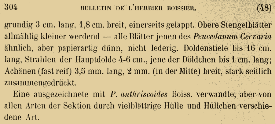 Протолог Pimpinella anthriscoides Boiss. (Flora Orientalis [Boissier] 2: 874. 1872):