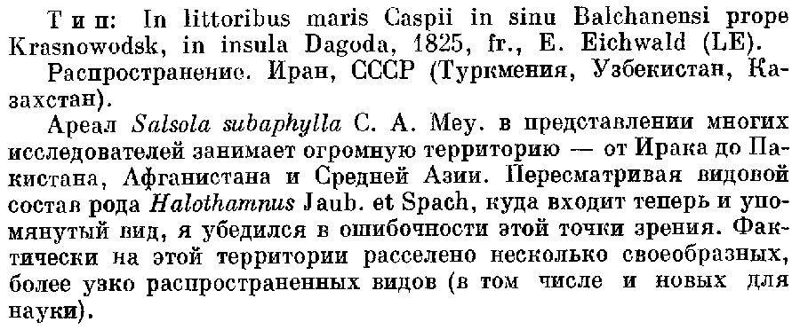 Протолог Salsola subaphylla var. arenaria Drobow и Salsola subaphylla var. typica Drobow (Herbarium Florae Rossicae 56: 2782. 1919):