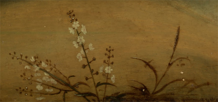 | Nikolay Stepanov | На картине растение невысокое, не выше колена. Растет на голом берегу морского залива. Кстати, стеблевые листья Verbascum phoniceum - относительно узкие, а прикорневых на картине не видно.