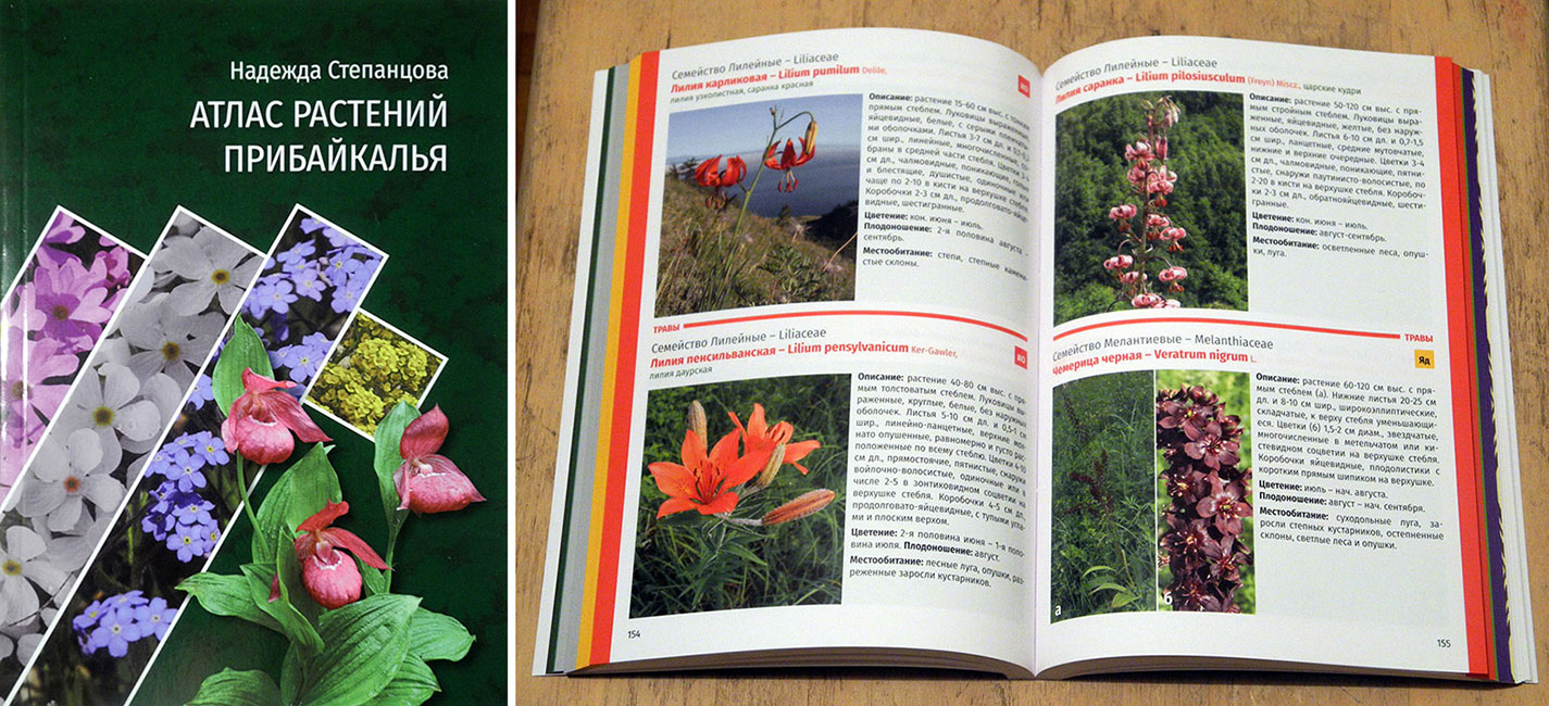 Друзья, вышел из печати новый "Атлас растений Прибайкалья"! Он немного отличается от моего предыдущего атласа, так как ориентирован в основном на школьников и не очень близко знакомых с ботаникой людей Smile image. Самое главное — растения я расположила по цветовому принципу: какой цветок, на таких он и страничках. Во-вторых, в нём нет сложных семейств и родов — злаков, осок, споровых, полыней, ив и т.п. Поэтому видов получилось меньше — 540 на 290 страницах, но зато книжка существенно легче Smile image И ещё одна новинка — я включила сюда растения с восточного побережья Байкала, которых не было в предыдущем атласе. Так что заказывайте! Цена книги 1000. Пересылка по России 180.
