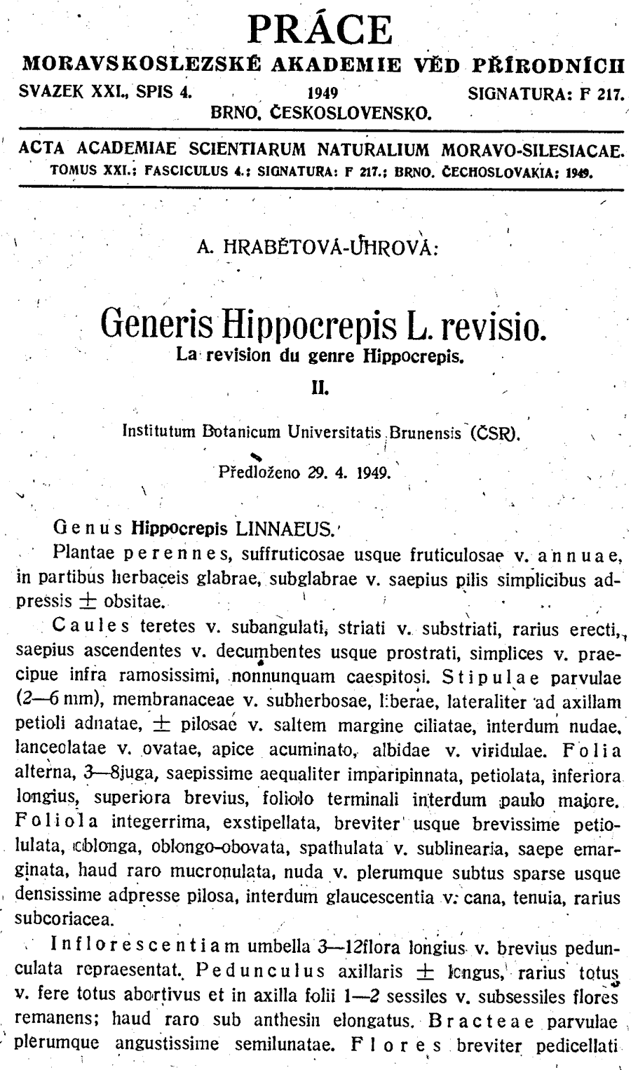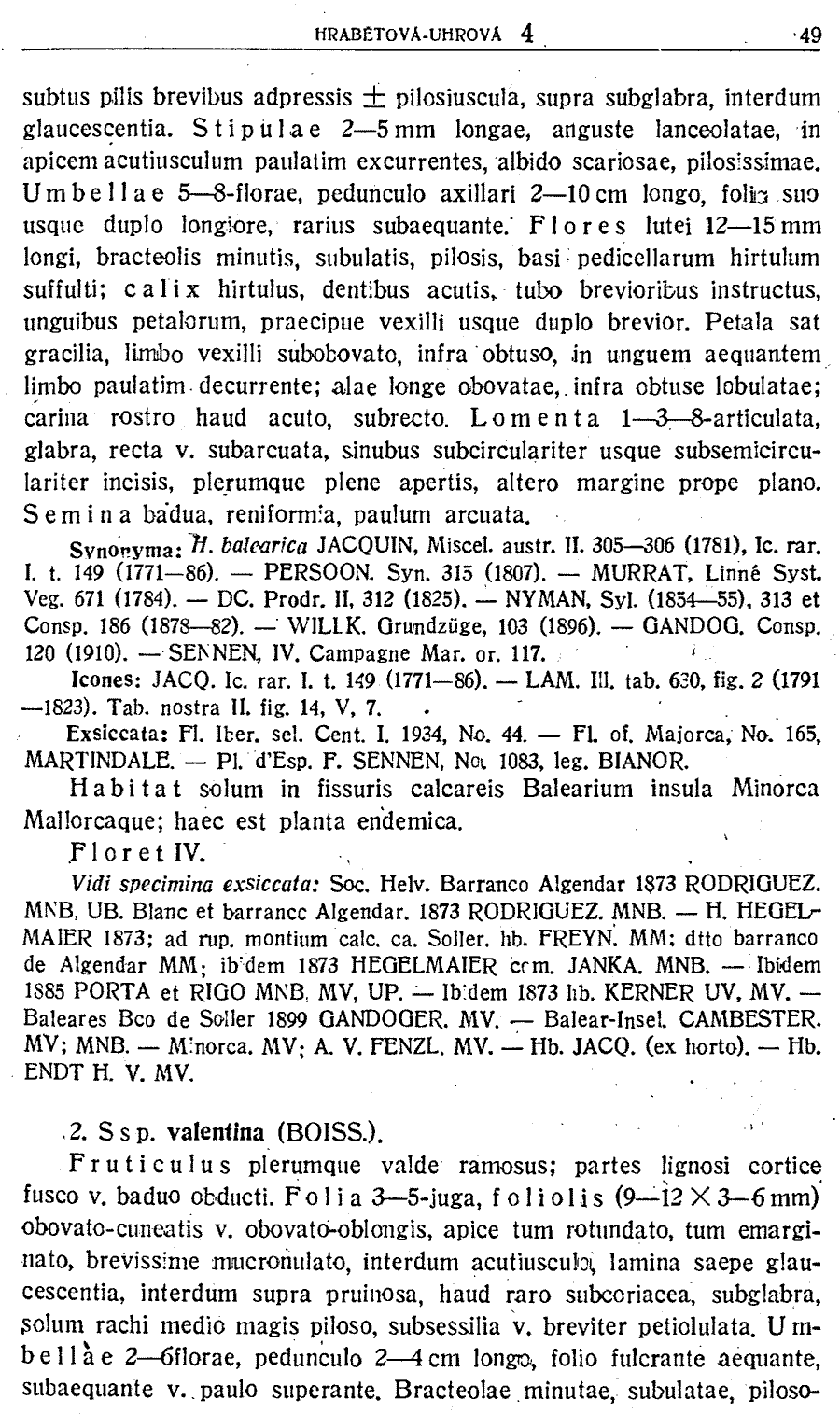 | Andriy Kovalchuk | Проверил - действительно, авторство следует указывать как Hippocrepis balearica subsp. valentina (Boiss.) Hrabětová-Uhrova. Комбинация Hippocrepis balearica subsp. valentina (Boiss.) O. Bolòs & Vigo была действительно обнародована, но она излишня.