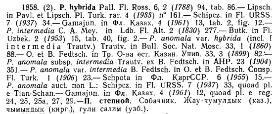 В "Растениях Центральной Азии" тоже указывается, что тип P. hybrida находится в BM. Да и китайские авторы считают, что они в 2004 г. осуществили выбор лектотипа, о чём упомянули в этой книге: