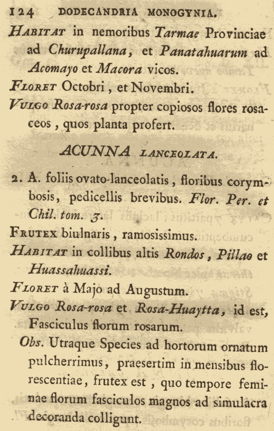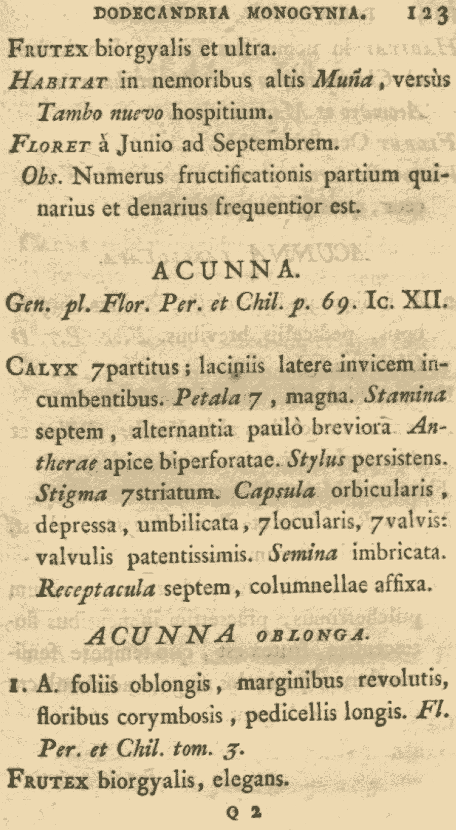 Протолог Acunna oblonga Ruiz & Pav. (Systema Vegetabilium Florae Peruvianae et Chilensis 1: 123. 1798 [late Dec 1798]) и Acunna lanceolata Ruiz & Pav. (Systema Vegetabilium Florae Peruvianae et Chilensis 1: 124. 1798 [late Dec 1798]):