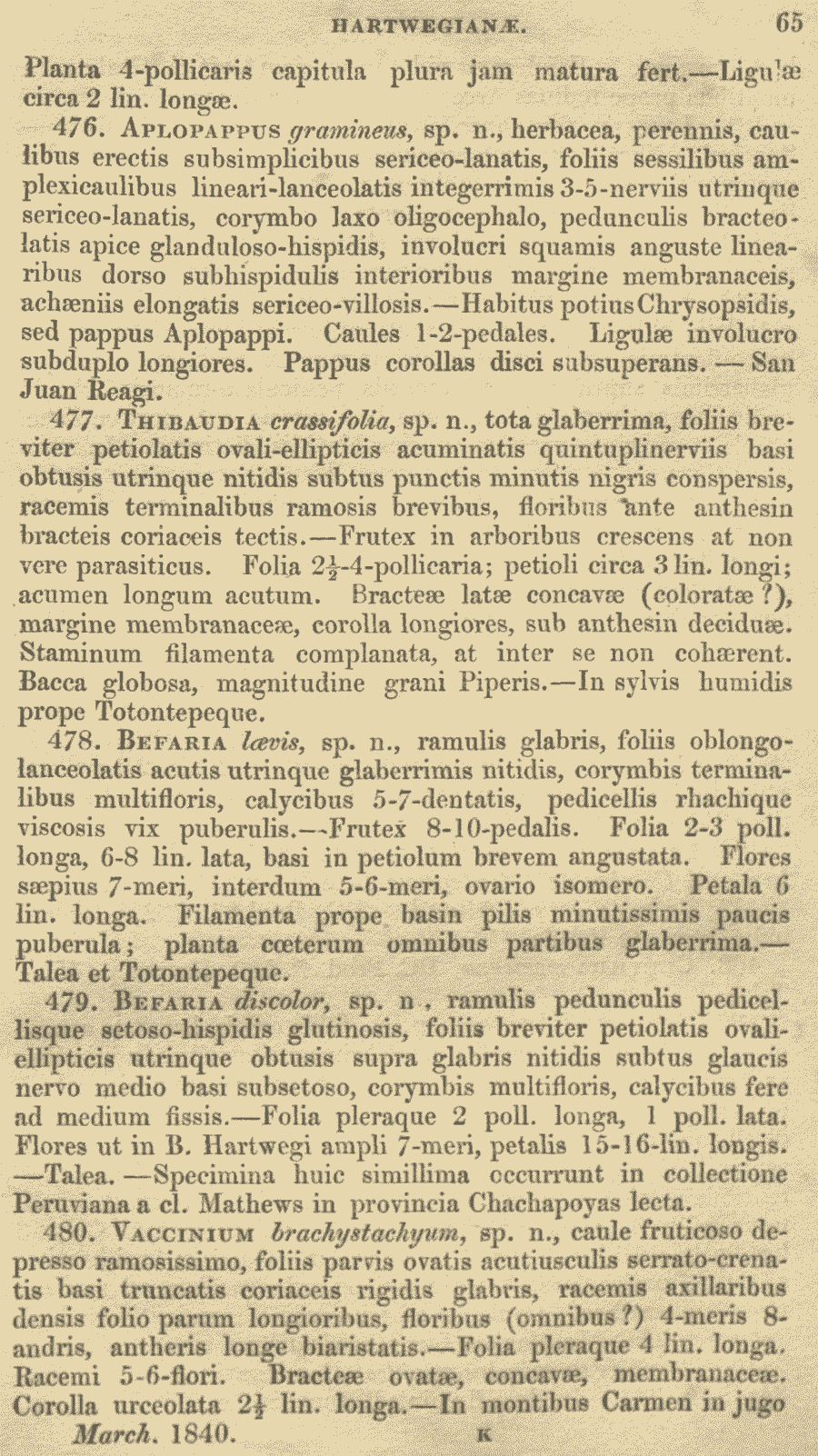 Протолог Bejaria discolor Benth. и Bejaria laevis Benth. (Plantas Hartwegianas imprimis Mexicanas: 65. 1840):
