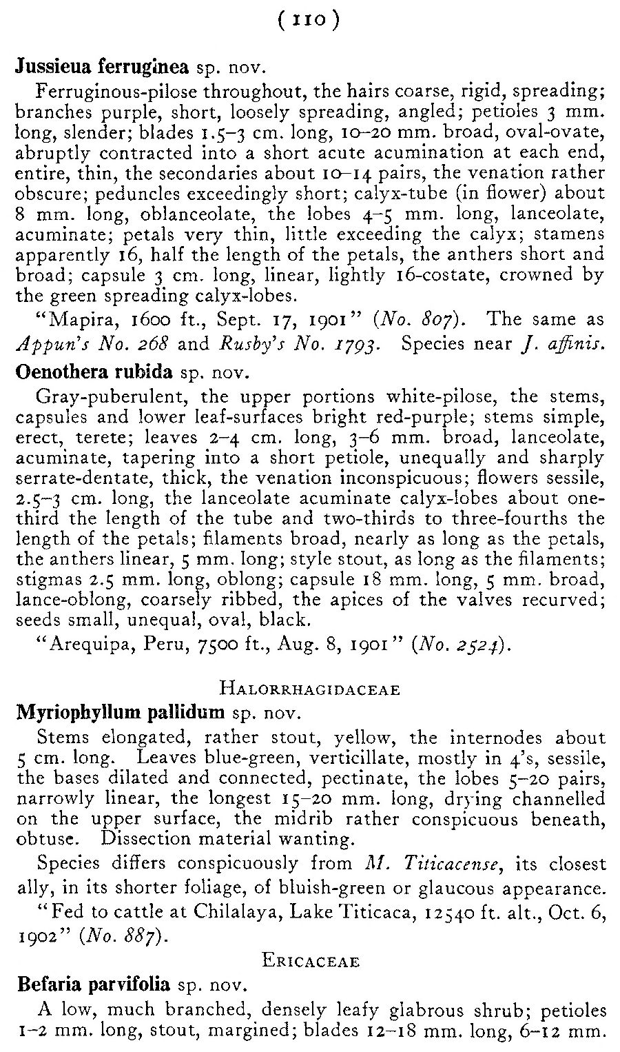Протолог Bejaria parvifolia Rusby (Bulletin of the New York Botanical Garden 8: 110. 1912):