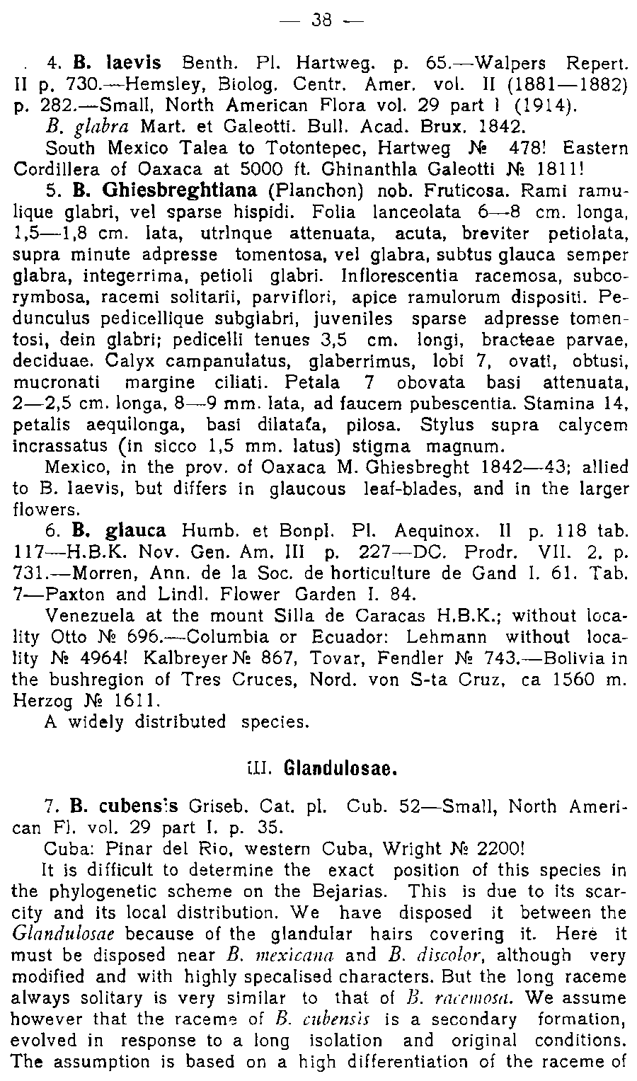Протолог Bejaria floribunda M. Martens & Galeotti и Bejaria glabra M. Martens & Galeotti (Bulletin de l'Academie Royale des Sciences et Belles-lettres de Bruxelles 9(1): 543. 1842):