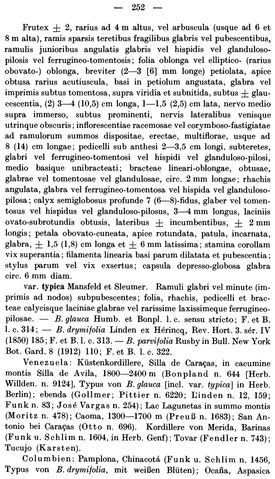 | Andriy Kovalchuk | Протолог Bejaria glauca var. tomentella Mansf. & Sleumer (Notizblatt des Botanischen Gartens und Museums zu Berlin-Dahlem 12: 255. 1935), Bejaria glauca var. setosa Mansf. & Sleumer (Notizblatt des Botanischen Gartens und Museums zu Berlin-Dahlem 12: 256. 1935) и Bejaria glauca var. glandulosa Mansf. & Sleumer (Notizblatt des Botanischen Gartens und Museums zu Berlin-Dahlem 12: 257. 1935):