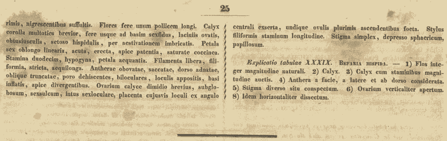 Протолог Bejaria hispida Poepp. & Endl. (Nova Genera ac Species Plantarum 1: 24, t. 39. 1835):