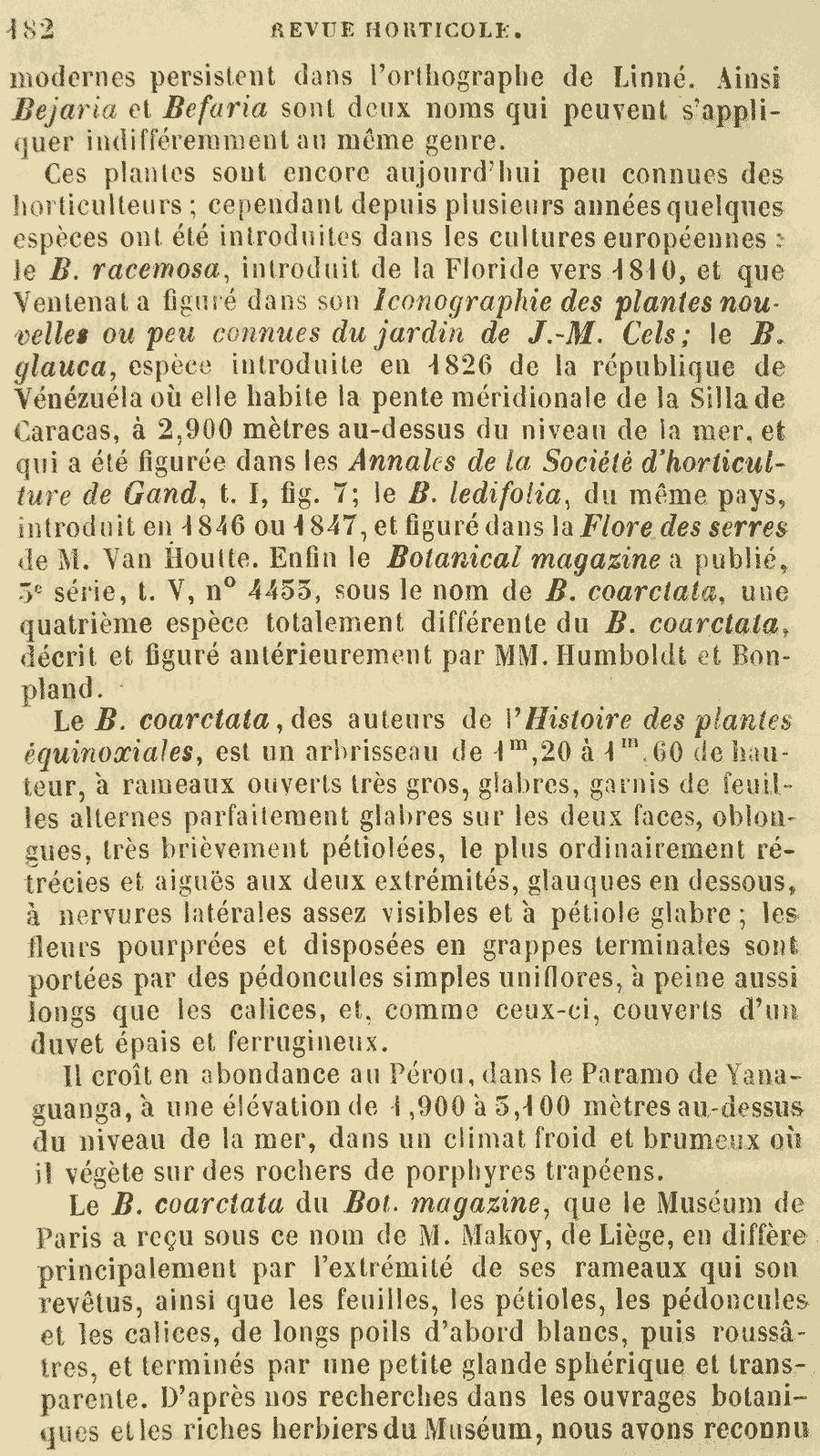 Комбинации Bejaria coarctata Hook. (Curtis's botanical magazine 75: t. 4433. 1849) не существует. В указанной публикации Хукер не намеревался обнародовать новую комбинацию, а лишь привёл описание вида, ранее описанного Бонпланом.