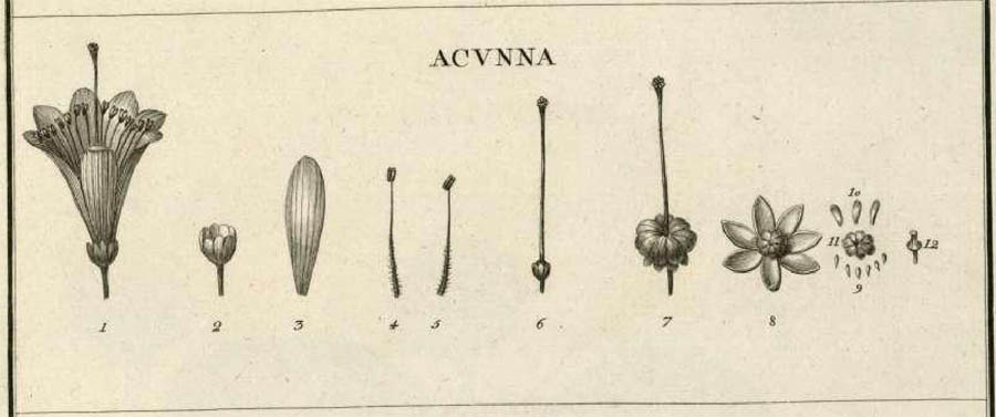 | Andriy Kovalchuk | Протолог рода Acunna Ruiz & Pav. (Florae Peruvianae, et Chilensis Prodromus: 69, pl. XII. 1794 [early Oct 1794]; тип: Acunna oblonga Ruiz & Pav. (= Bejaria aestuans Mutis in L.  :