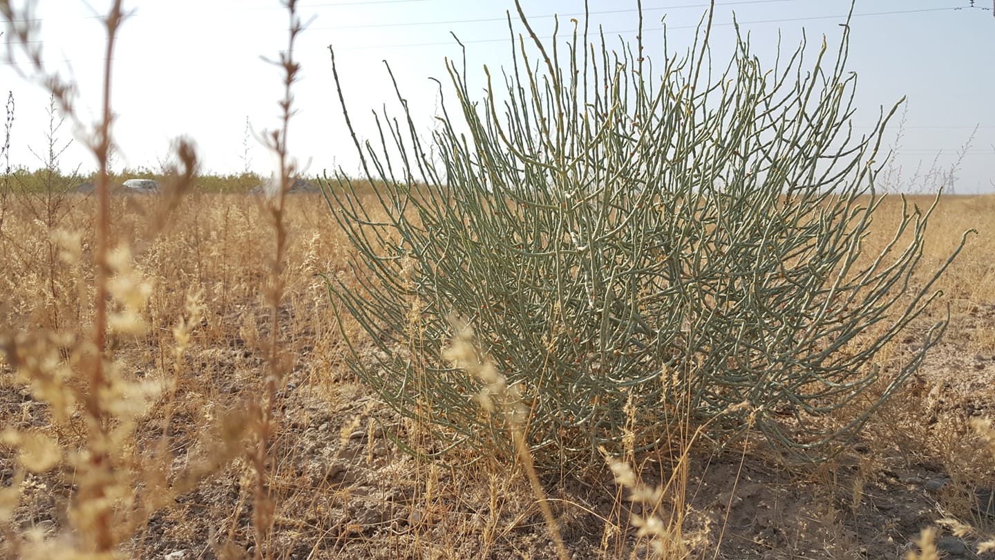 Гончары Риштана - керамического центра в Ферганской долине, называют это растение гулоб и кырк-бугин. Возможно это Поташник (лат. Kalidium) или anabfsis eriopoda (ежовник честистоногий). Не понятно, это разные растения или разновидности одного? И какое из них на фото&