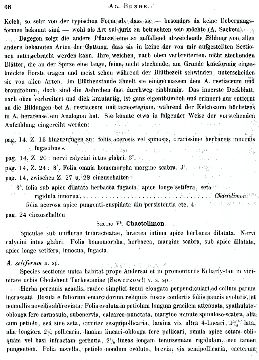 | Andriy Kovalchuk | Протолог Acantholimon setiferum Bunge (Mémoires de l'Académie Impériale des Sciences de St.-Pétersbourg, ser. 7, 18(2): 68. 1872):