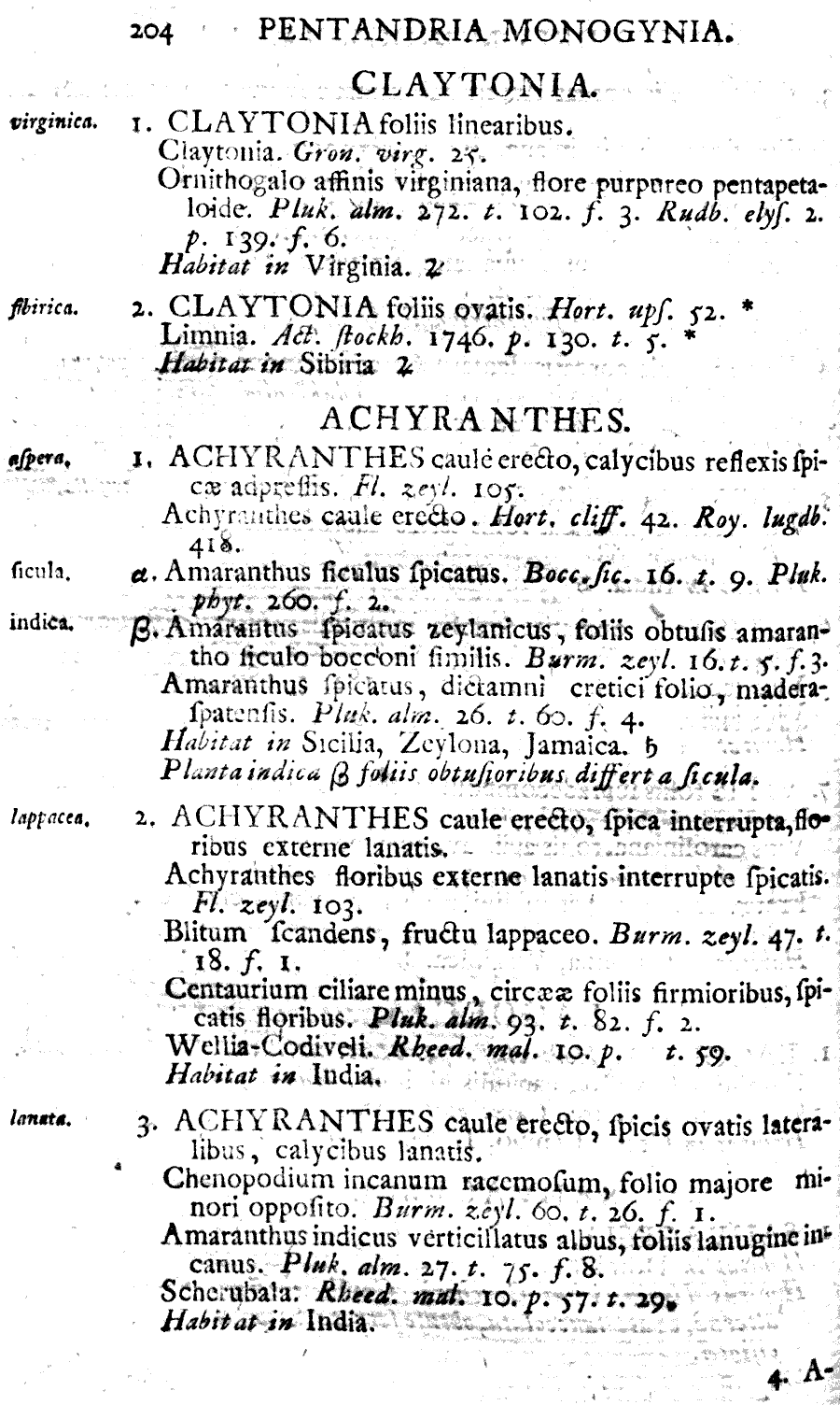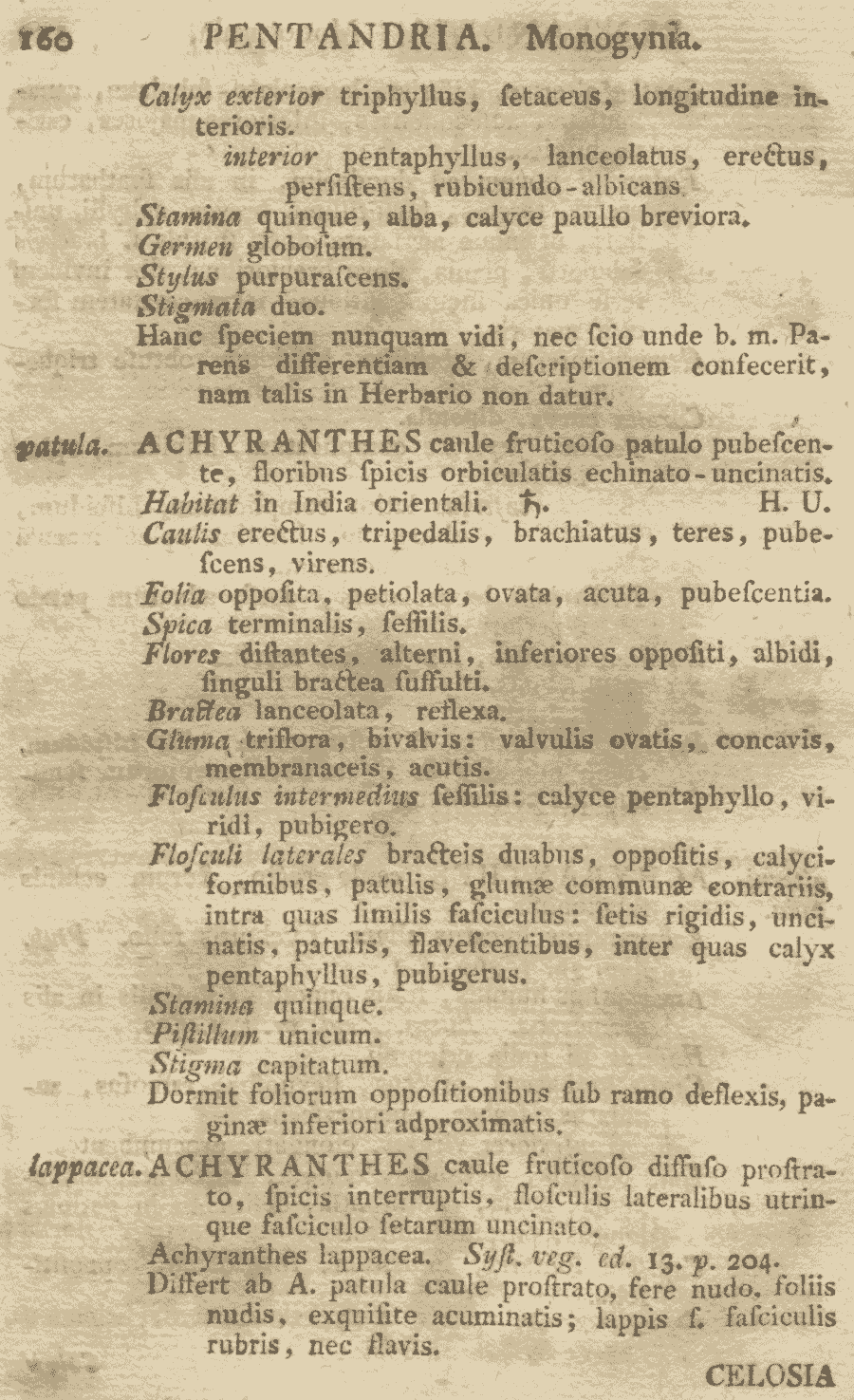 Протолог Achyranthes lappacea L. (Species Plantarum 1: 204. 1753 [1 May 1753]):