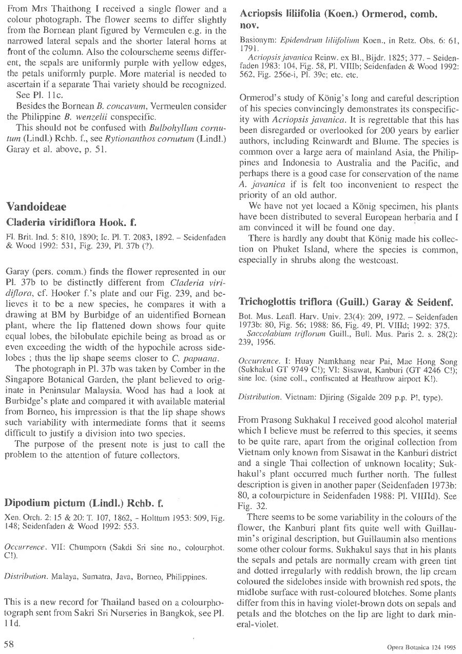 | Andriy Kovalchuk | Обнародование комбинации Acriopsis liliifolia (J. Koenig) Ormerod (Opera Botanica 124: 58. 1995):
