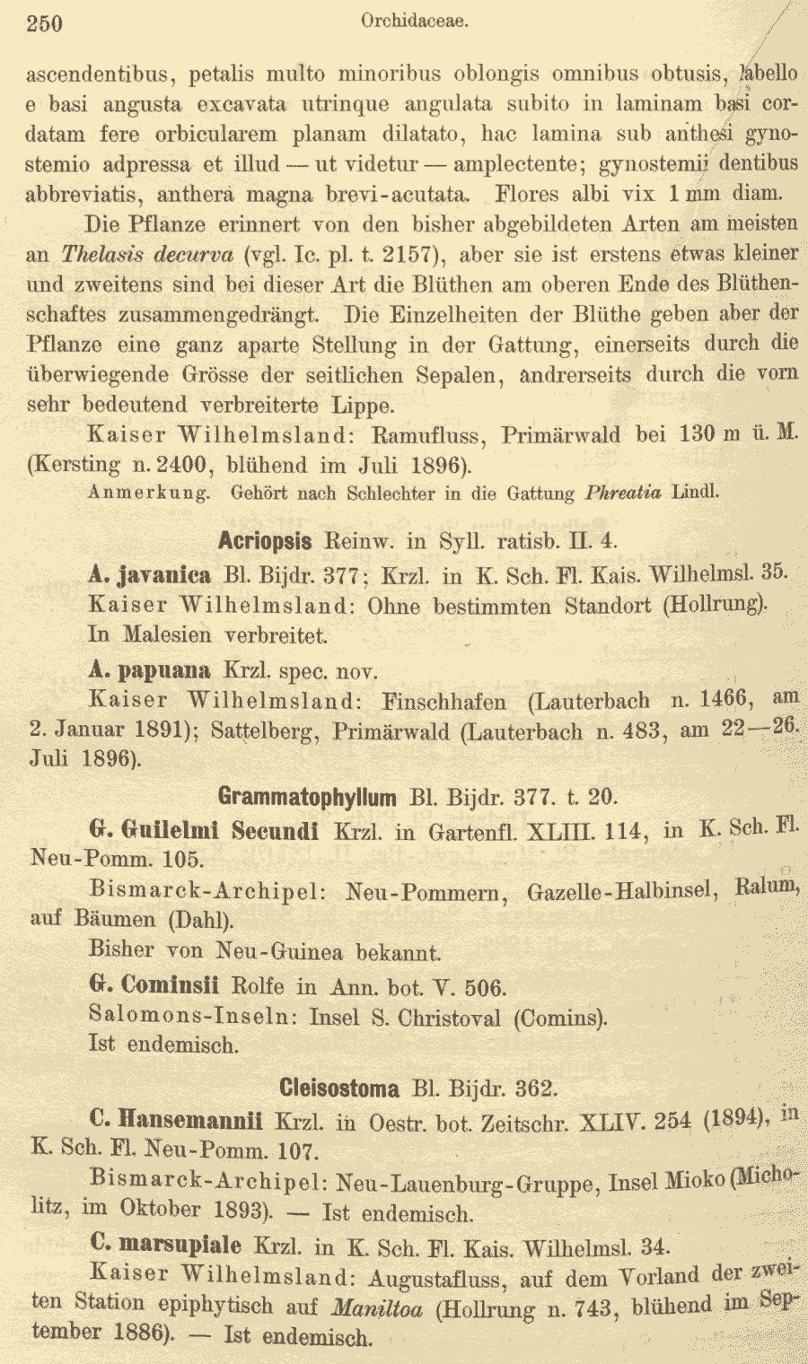| Andriy Kovalchuk | Обнародование комбинации Acriopsis papuana Kraenzl. ex K. Schum. & Lauterb., nom. inval. (Flora der deutschen Schutzgebiete in der Südsee: 250. 1900):