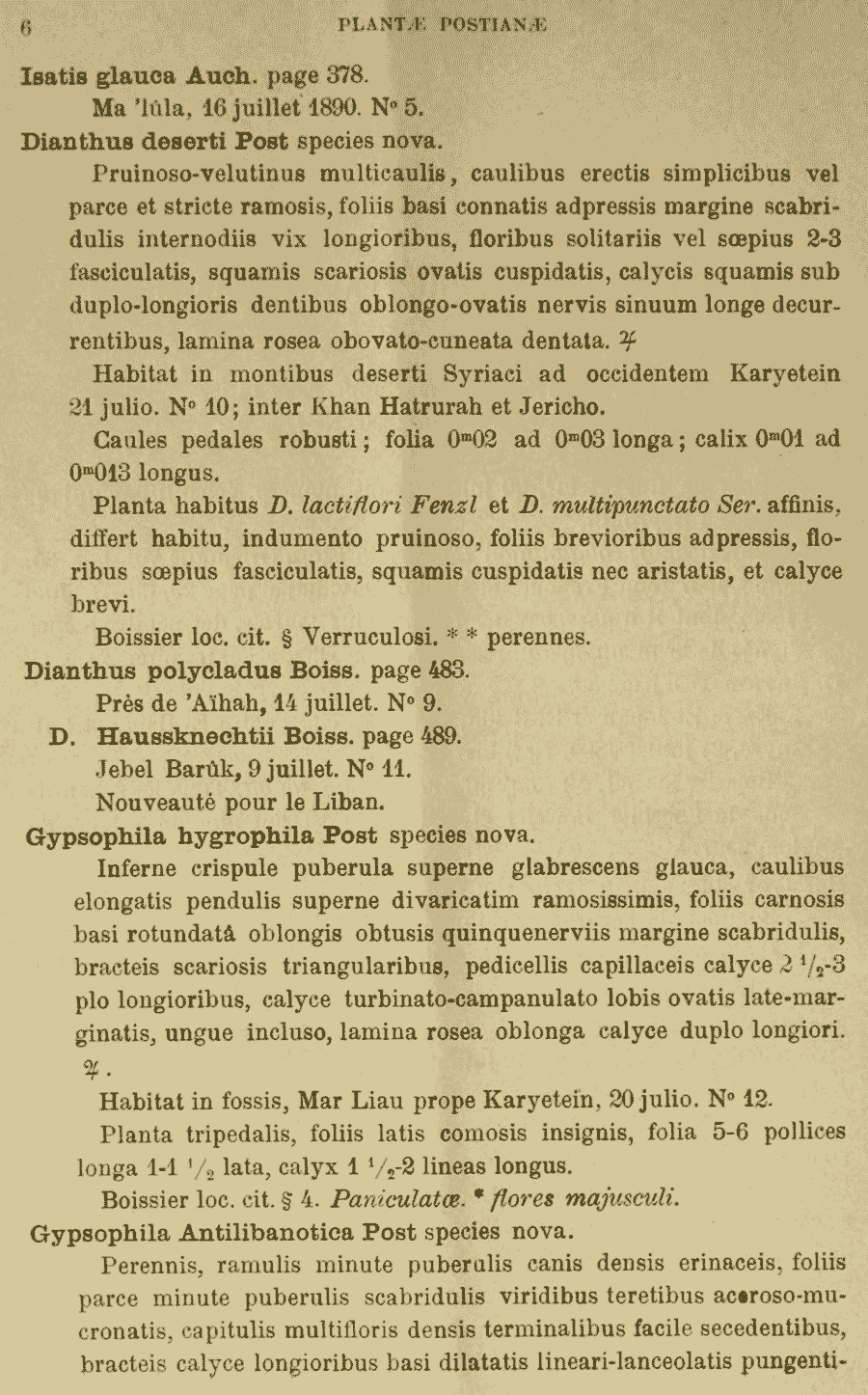 Протолог Gypsophila antilibanotica Post (Plantae Postianae 2: 6. 1891):