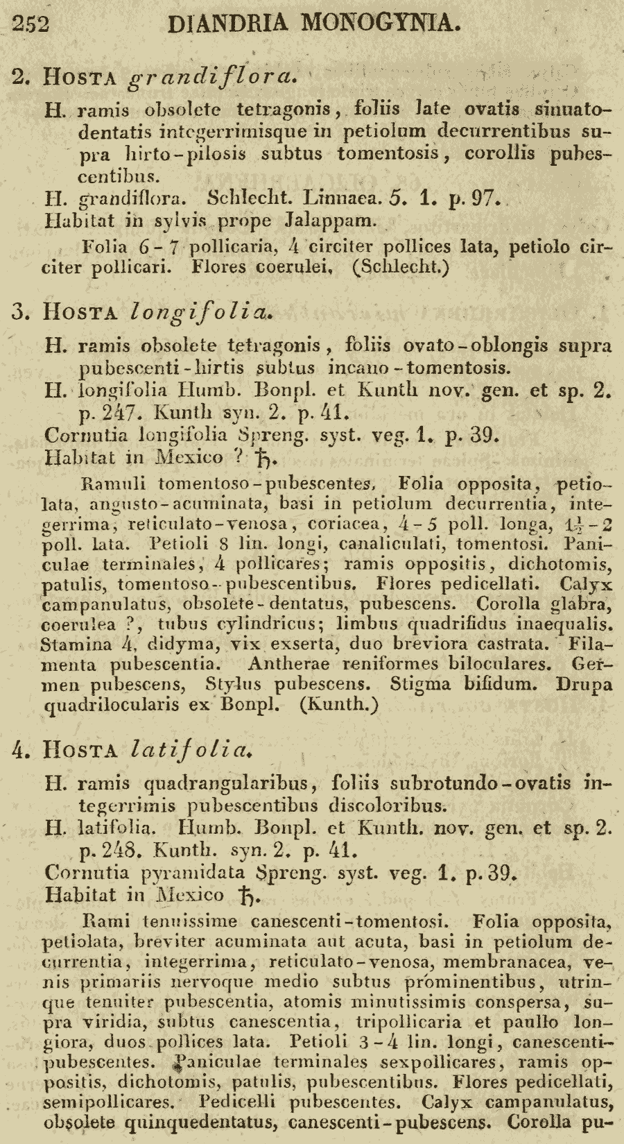 Протолог Hosta longifolia Kunth (Nova Genera et Species Plantarum (quarto ed.) 2: 247. 1818 [Feb 1818]) и Hosta latifolia Kunth (Nova Genera et Species Plantarum (quarto ed.) 2: 248. 1818 [Feb 1818]):
