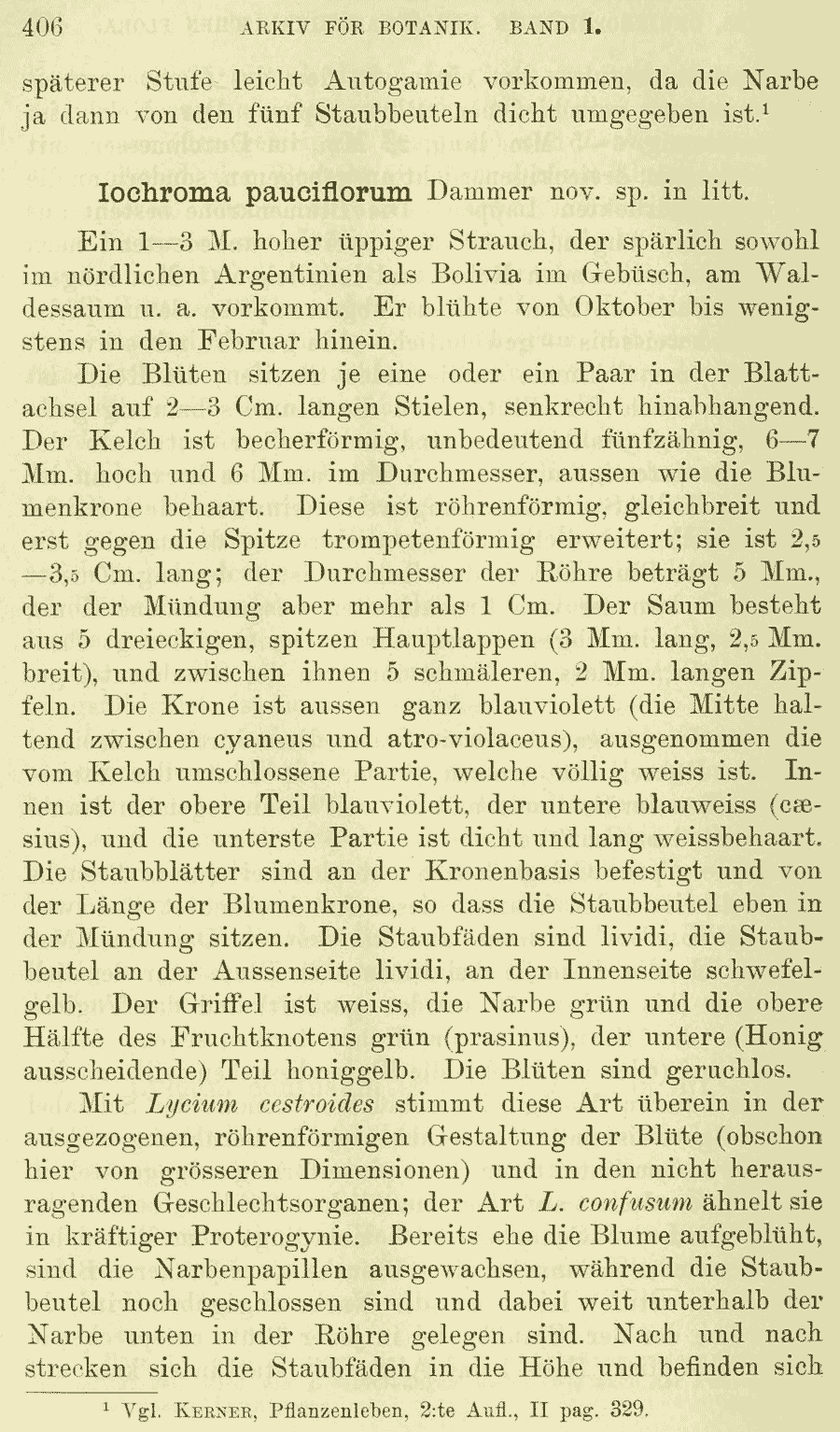 Протолог Iochroma pauciflorum Dammer (Arkiv för Botanik 1: 406. 1903):