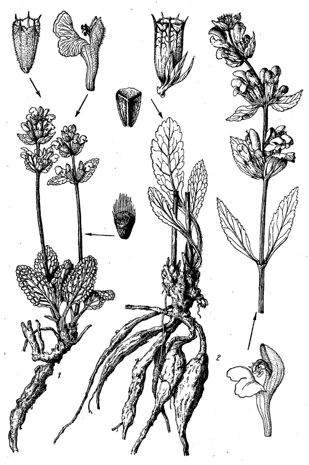 | Dmitry Oreshkin | Иллюстрация из Флоры СССР (21:15) — под № 2 (облик растения, чшч., вн., орешек). Флора СССР, т. 21, с. 15.png |