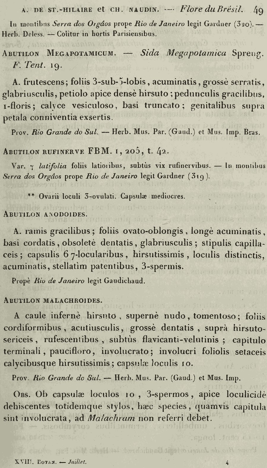 | Andriy Kovalchuk | Обнародование комбинации Abutilon megapotamicum (A. Spreng.) A.St.-Hil. & Naudin (Annales des Sciences Naturelles; Botanique, sér. 2, 18: 49. 1842):