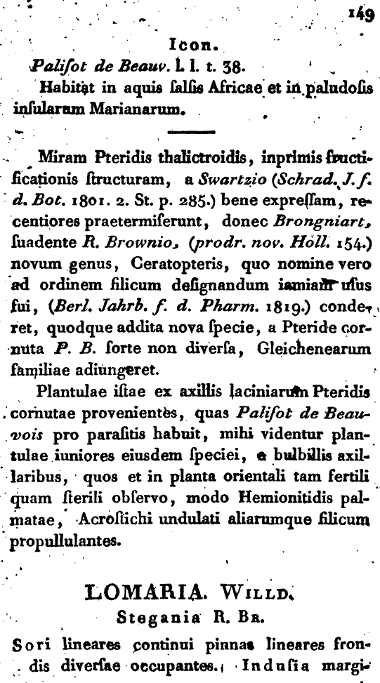 (Enumeratio Filicum quas im Itinere Circa Terram Legit Cl. Adalbertus de Chamisso 147. 1824 [8 Apr-28 May 1824]):