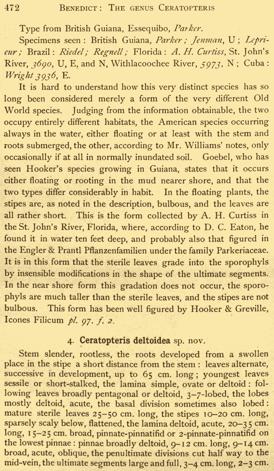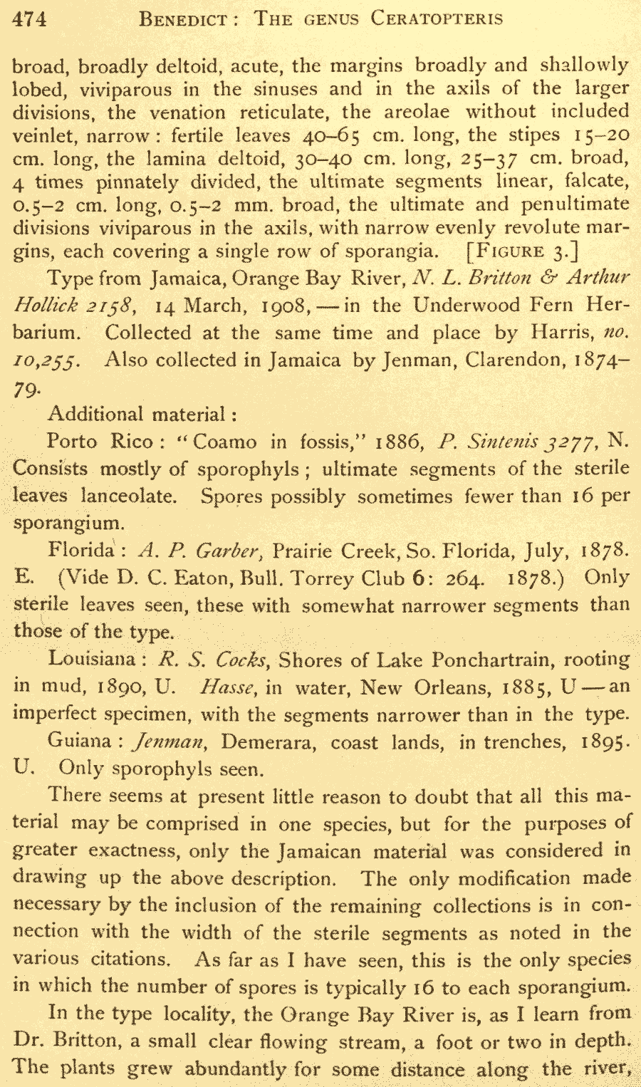 Протолог Ceratopteris deltoidea Benedict (Bulletin of the Torrey Botanical Club 36: 472, fig. 3. 1909):