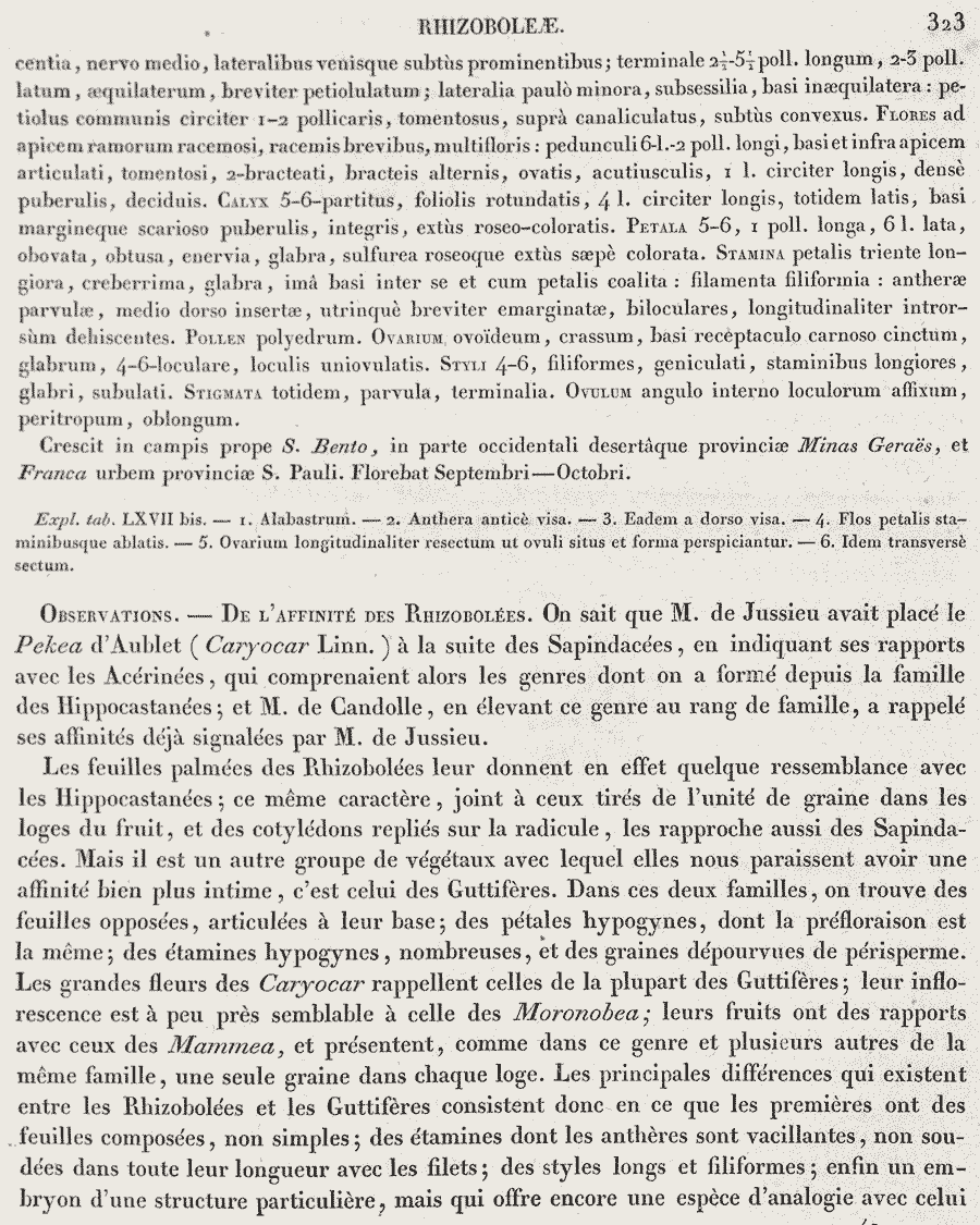 Протолог Caryocar brasiliense Cambess. in A. St.-Hil. (Flora Brasiliae Meridionalis (quarto ed.) 1(9): 322, pl. 67 bis. 1825 [5 Apr 1828]):