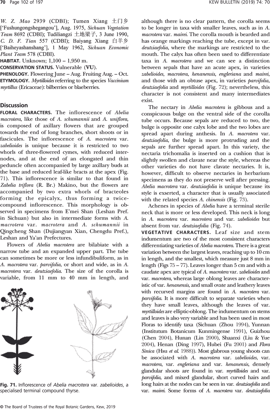 | Andriy Kovalchuk | Обнародование комбинации Abelia macrotera var. myrtilloides (Rehder) Landrein (Kew Bulletin 74(4)-70: 101. 2019):