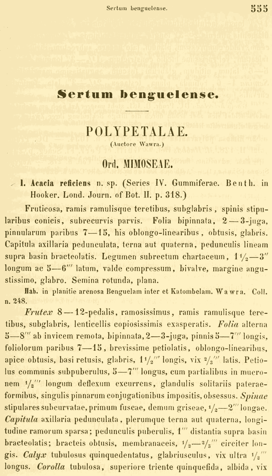 Протолог Acacia reficiens Wawra & Peyr. (Sitzungsberichte der Kaiserlichen Akademie der Wissenschaften. Mathematisch-Naturwissenschaftliche Classe 38: 555. 1860):