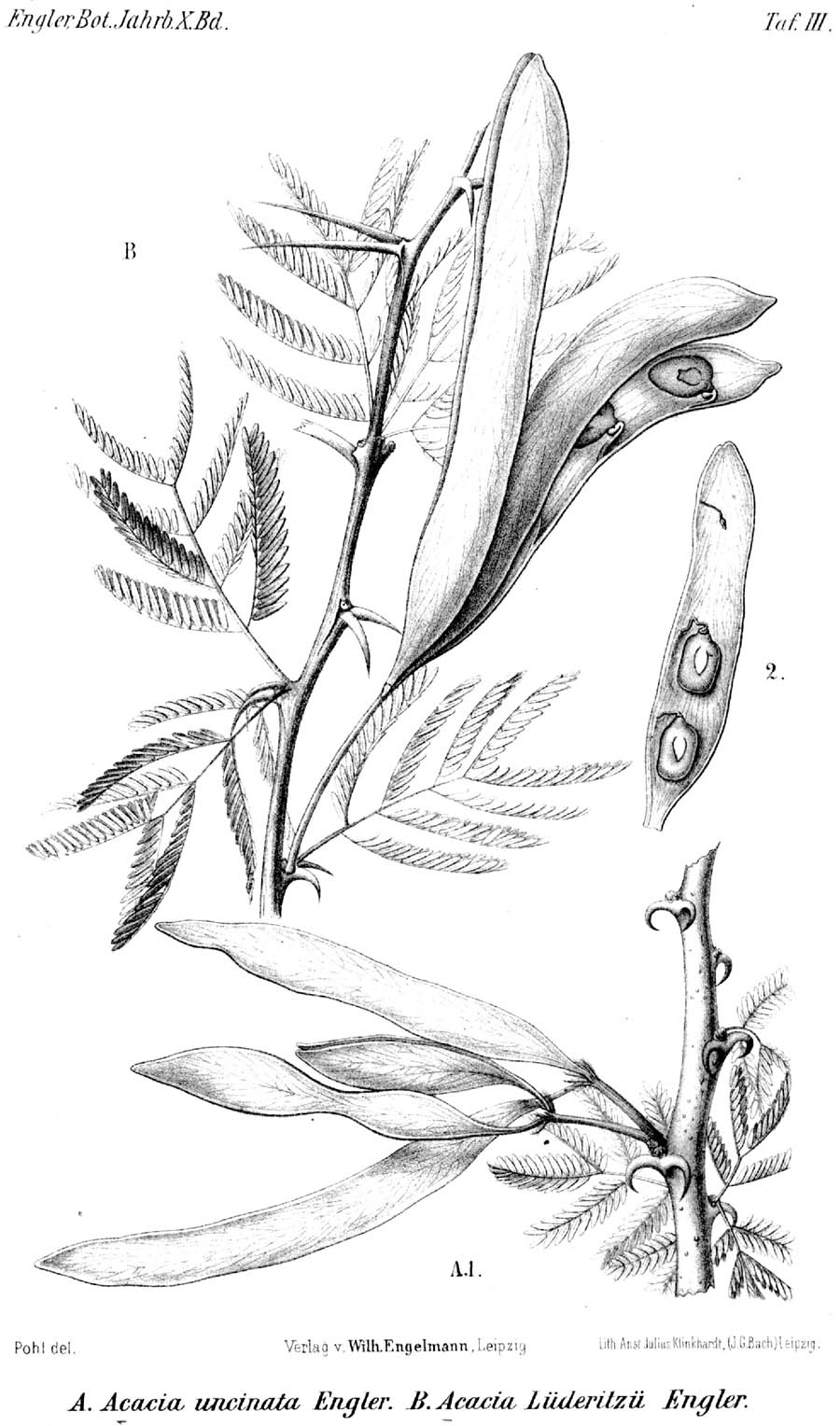 | Andriy Kovalchuk | Протолог Acacia uncinata Engl., nom. illeg. (Botanische Jahrbücher für Systematik, Pflanzengeschichte und Pflanzengeographie 10(1-2): 21. 1888):