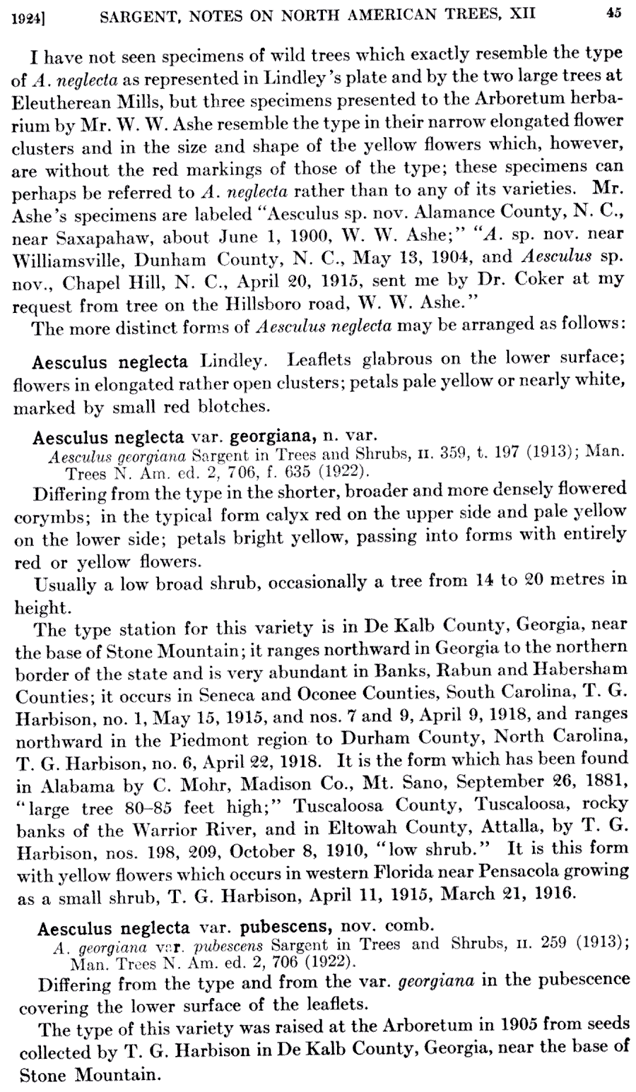 | Andriy Kovalchuk | Протолог Aesculus georgiana Sarg. и Aesculus georgiana var. pubescens Sarg. (Trees & Shrubs [Sargent] 2: 259, pl. 197. 1913):