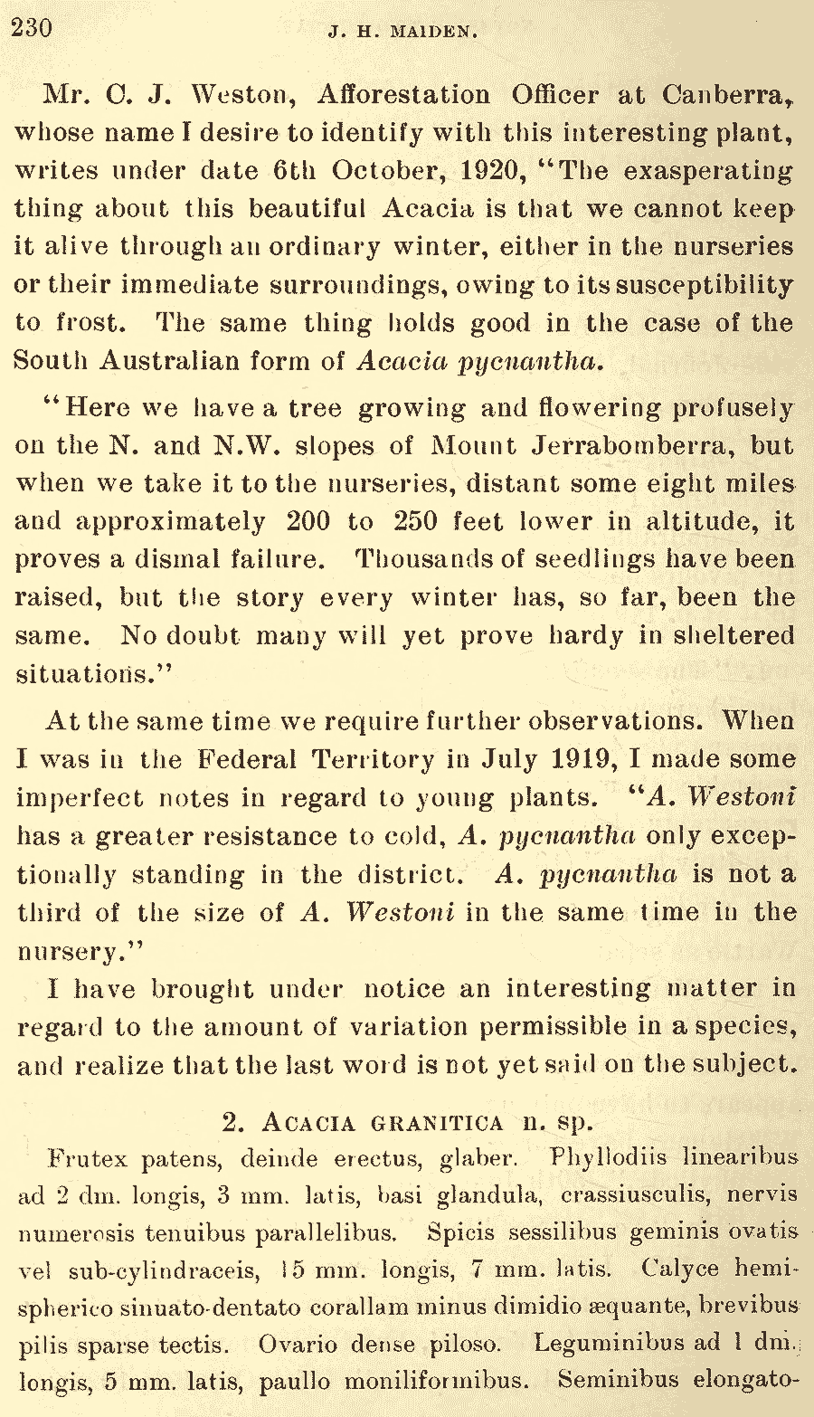 | Andriy Kovalchuk | Протолог Acacia westonii Maiden (Journal and Proceedings of the Royal Society of New South Wales 54: 227. 1920):