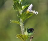 Растение до 40 (50) см высотой. Ст. прямой, крепкий, обычно сильно ветвистый в верхней или средн. части, с вет., отходящими под острым углом, реже — простой, красноватый, опушенный беловатыми курчавыми, более или менее отклоненными книзу волосками. Стеблевые листья в числе 5–7 пар, нижн. обычно рано опадают, 4–8 мм длиной и 3–6 мм шириной, яйцевидные или широкояйцевидные, при основании клиновидные, верхн. л. усеченные, туповатые или почти округлые на верхушке, с (3) 5–8 острыми зубцами с каждой стороны, снизу с выступающими жилками, по жилкам и на нижн. стороне л. опушенные беловатыми щетинками, иногда голые. Соцветие удлиненное, многоцветковое, цв. появляются на 5–9-м узле снизу. Прицветники сходные со ст. л., но шире их, обычно эллипсоидально-округлые, с 5–8 большей частью узкотреугольными острыми остистыми, слегка изогнутыми зубцами. Чашечка 3–4 мм длиной, с ланцетными длинно заостренными остистыми долями, мелкощетинистая или голая. Венчик 6–8 мм длиной, беловатый с фиолетовой нижн. губой, слегка длиннее верхних губы. Тычинок 4, двусильные, сходящиеся под сводом верхней губы; гнезда пыльники параллельные, при основании с остроконечием. Пест. с длинным волосистым столбиком и головчатым ворсистым рыльцем. Коробочки обратнояйцевидные, при основании клиновидные, на верхушке почти без выемки, короче чаш., голые, по краю реснитчатые.