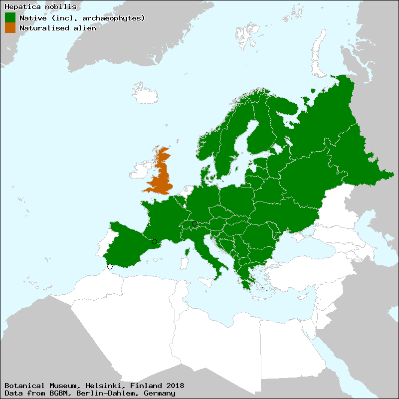 Indications in Red Lists (40)Архангельская область (2008) Белгородская область (2005) Брянская область (2004) Брянская область (2016) Владимирская область (2008) Владимирская область (2018) Вологодская область (2004) Вологодская область (2015) Калужская область (2006) Калужская область (2015) Костромская область (2009) Костромская область (2019) Курская область (2002) Курская область (2013) Курская область (2017) Липецкая область (2005) Республика Молдова (2002) Республика Молдова (2015) Город Москва (2001) Город Москва (2011) Город Москва (2019) Город Москва (2022) Московская область (1998) Московская область (2008) Московская область (2018) Нижегородская область (2005) Нижегородская область (2017) Саратовская область (1996) Смоленская область (1997) Тверская область (2006) Тверская область (2012) Тульская область (2010) Тульская область (2020) Украина, Винницкая область (2010) Украина, Волынская область (2009) Украина, Волынская область (2018) Украина, Киевская область (2012) Украина, Черниговская область (2018) Ярославская область (2004) Ярославская область (2015) Indications in floristic lists (20)Киевcкая городская агломерация Литва, г. Каунас, лес Клебонишкис. Охраняемые растения западных окрестностей г.Минска Первоцветы Ленинградской области Редкие растения Национального парка «Куршская коса» (2009) Список видов сосудистых растений квадрата Ж-14 (Москва, ВАО, Измайлово) Список сосудистых растений Тульской области Флора Боровичского района Новгородской области Флора города Дубна и прилегающих районов Московской и Тверской областей Флора НПП "Подільські Товтри" (Аборигена фракція), Україна, Хмельницька обл. Флора сосудистых растений Подушкинского леса (Московская область) Флора Ульяновского лесопарка (Москва, НАО) Флора Хотинської височини (Аборигена фракція), Україна, Чернівецька обл. Web resourcesБотаническое описание | www.ecosystema.ruComplain Подробное описание отдельных частей растения, его экологии, распространения и т.п. Ботаническое описание | ru.wikipedia.orgComplain Подробное описание отдельных частей растения, его экологии, распространения и т.п. Ботаническое описание | www.cnshb.ruComplain Подробное описание отдельных частей растения, его экологии, распространения и т.п. Экологические характеристики | www.impb.ruComplain Оценки по экологическим шкалам Text to cite the pageHepatica nobilis Schreb. // Плантариум. Растения и лишайники России и сопредельных стран: открытый онлайн атлас и определитель растений. [Электронный ресурс] URL: https://www.plantarium.ru/page/view/item/18556.html (дата обращения: 18.03.2026). Hepatica nobilis Schreb. // Plantarium. Plants and lichens of Russia and neighboring countries: open online galleries and plant identification guide. URL: https://www.plantarium.ru/lang/en/page/view/item/18556.html (accessed on 18 Mar 2026). |