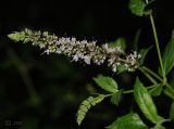 Многолетник. Ст. прямые, 40—90 см выс.; голые или почти голые, зеленые р.; бесплодные побеги только подземные; л. почти сидячие или сидячие, преимущественно верхние, или короткочерешковые, голые или почти голые, яйцевидно-продолговатые или продолговато ланцетные, по краю остро и неравно пильчатые или зубчатые, на верхушке заостренные, со слабой сетью жилок. Сцв. сжатые, тонкие, цилиндрические, колосовидные, прерванные — с расставленными или вверху сближенными ложными мутовками; прицветные л. сходные с прицветниками, не превышают полумутовки; прицв. несколько длиннее чашечек; чшч. голая, с одинаковыми треугольными зубцами, при плодах в зеве немного суженная, с несколько сходящимися зубцами; вн. розовый или лиловый, в два раза превышает чашечку. VII—IX.