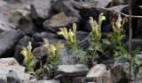Кустарничек с приподнимающимися одревеснелыми стеблями и ветвями, до 50 см дл. Годичные стебли (ветви) травянистые, густо длинно оттопыренно железисто и нежелезисто волосистые. Листья зеленые, яйцевидные, почти округлые или почковидно округлые, очень тупые, при основании б. м. сердцевидные, крупно зубчатые с туповатыми или островатыми зубцами, густо железисто и нежелезисто волосистые с выступающими снизу жилками, на грубых длинных густо опушенных черешках. Прицветники травянисто перепончатые, сидячие, широко ромбически продолговатые, островатые, цельнокрайние, густо длинно железисто и нежелезисто волосистые. Цветы в густых кистях, на мохнатых цветоножках, приблизительно равных междоузлиям. Чашечка густо длинно железисто волосистая, при плодах 4 мм дл.; верхняя губа с широко продолговатым, почти округлым, около 5 мм шир. придатком. Венчик 25-30 мм дл., желтый, иногда с пурпуровыми впоследствии тубами, железисто волосистый, с более длинными нежелезистыми волосками на губах, нижняя губа изнутри голая. Орешки угловатые, пушистые. Цветет и плодоносит в июле-августе.
