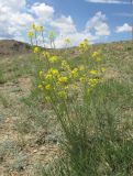 Botanical descriptionМноголетник. Растение голое, гладкое, сизоватое (или усаженное в нижней части короткими волосками), высотой 20—70 см, с ветвистым (иногда от основания) стеблем; листья слегка мясистые, нижние на черешках, перисто-раздельные или перисто-рассеченные на узкие, линейные, более или менее зубчатые или цельнокрайние доли, из которых верхушечная длиннее боковых, стеблевые листья цельные, линейные или перисто-раздельные, верхние узко-линейные или почти нитевидные, цельнокрайние. Цветки в рыхловатых кистях; чашелистики светлые, желтоватые, голые или волосистые, длиной 4—5, лепестки бледно-желтые, длиной 6—9 мм; стручки косо вверх направленные, длиной 25—35, шириной около 0,75 мм, линейно-четырехгранно-цилиндрические, голые, слегка бугорчатые, на верхушке с коротким мясистым столбиком, длиной около 1 мм, на тонких ножках длиной 5—7 (10) мм; семена эллиптические, красно-коричневые, длиной 1, шириной 0,5 мм. Цветение: IV—VI. Глинистые степи, каменистые склоны, речные террасы, иногда как сорное на залежах и в полях. — Европ. ч.: Верх.-Волж., Волж.-Кам., Верх.-Днепр., Сред.-Днепр., Волж.-Дон., Заволж., Причерн., Крым, Ниж.-Дон., Ниж.-Волж., Урал.; Кавказ: Предкавк.; Зап. Сибирь: все районы; Вост. Сибирь: все районы; Ср. Азия: Арало-Касп., Прибалх., Дж.-Тарб., Тянь-Шан., Сыр-Дар., Пам.-Ал. Общее распространение: Ср. Евр., Балк.-Малоаз., Монг. Описан из Зап. Евр. Примечание. S. polymorphum (Murr.) Roth весьма полиморфный вид, нуждающийся в углубленном изучении. В пределах его необходимо отметить: 1) var. latifolium (Korsh.) О. Е. Schulz (S. junceum M. В. var. latifolium Korsh.), отличающуюся широкими, продолговатыми листьями, из которых нижние более или менее выемчато-зубчатые до перисто-раздельных, а стеблевые — цельнокрайние, длиной до 7—10 см, шириной 6—15 мм. Известно из района Алайского хребта; 2) var. soongoricum (Rgl. et Herd.) О. E. Schulz (S. junceum M. B. var. soongoricum Rgl. et Herd.) — имеет волосистые цветоножки и более или менее волосистые же чашелистики, встречается на востоке (в Ср. Азии и в области Нижнего Поволжья, на Алтае); 3) var. pinnatisectum Vass. — с перисто-рассеченными стебельками листьев (иногда с перисто-надрезанными, раздельными или зубчатыми сегментами), в типичных формах встречается на мелах в Поволжье и на Урале. Источник: Васильченко И. Т. Гулявник — Sisymbrium L. // Флора СССР. – М.; Л.: Изд-во АН СССР, 1939, Т. 8. — С. 46—47. Indications in floristic lists (19)Киевcкая городская агломерация Ростовская обл., Верхнедонцовский р-н, хутор Солонцовский Список сосудистых растений ГНПП "Алтын-Эмель" Список сосудистых растений Тульской области Флора гарей равнинных сосновых лесов юго-востока Западной Сибири Флора Гурьева оврага (Самарская область) Флора долин рек Мокрый Еланчик и Сухой Еланчик Флора Иле-Алатауского национального парка (Республика Казахстан) Флора памятника природы "Степное урочище "Горки" Web resourcesБотаническое описание | www.nsc.ruComplain Подробное описание отдельных частей растения, его экологии, распространения и т.п. Ботаническое описание | www.efloras.orgComplain Подробное описание отдельных частей растения, его экологии, распространения и т.п. (на англ. языке) Гербарий БИН РАН | herbariumle.ruComplain Фотографии гербарных образцов Фото, распространение | www.gbif.orgComplain Экологические характеристики | www.impb.ruComplain Оценки по экологическим шкалам Text to cite the pageSisymbrium polymorphum (Murray) Roth // Плантариум. Растения и лишайники России и сопредельных стран: открытый онлайн атлас и определитель растений. [Электронный ре