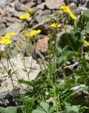 Distinctive featuresМноголетник. Ст. прямые, 30—50 см выc. приподнимающиеся или почти прямостоящие, мало-облиственные, одетые сравнительно негустыми, прилегающими или прямостояще-оттопыренными, короткими и длинными, беловатыми волосками. Цв. чаще крупные, с лп. значительно длиннее чшл. B остальном сходно c Potentilla chrysantha Trev. VI—VII. Источник: Флора СССР, т. 10, с. 182. Botanical descriptionМн. 15—50 см выс.; корневище мощное, несущее укороченные стержни, густо покрытые бурыми остатками прилистников; стебли из слегка приподнимающегося основания прямостоящие, мало олиственные, негусто полуприжато-волосистые; прикорневые и нижние стеблевые листья длинно черешковые, 5—7-пальчатые, стеблевые листья коротко черешковые, 3—5-пальчатые; прилистники крупные, у прикорневых и нижних стеблевых листьев ржаво-бурые, с ланцетовидными свободными концами, у верхних стеблевых зеленые, с яйцевидно-ланцетными концами; листочки обратно-яйцевидные или продолговато-обратно-яйцевидные, пильчато-зубчатые, с 6—10 крупными, притупленными зубцами, с обеих сторон рассеянно прижато-волосистые, зеленые; цветки 16—20 мм в диам. в щитковидно-метельчатых соцветиях; чашечка негусто-волосистая, наружные чашелистики ланцетные, несколько короче яйцевидных внутренних; лепестки желтые, сердцевидные, на верхушке широко выемчатые, в 1,5—2 раза длиннее чашелистиков; цветоложе волосистое; плодики слабо бороздчатые; столбики почти верхушечные, в основании слегка утолщенные и с сосочками, несколько короче плодиков. Цв. V—VII. Растет на горных травянистых и остепненных лугах и в поймах рек. Встречается в 23. Тарб., 24. Джунг. Алат., 95. Заил. Алат., 25а. Кетм. Алат., 29. Зап. ТШ. Общ. распр. Ср. Азия (Памироалай), Зап. Китай. Источник: Флора Казахстана, т. 4, с. 439—440. Indications in floristic lists (5)Список сосудистых растений ГНПП "Алтын-Эмель" Флора Иле-Алатауского национального парка (Республика Казахстан) Web resourcesБотаническое описание | fungi.suComplain Подробное описание отдельных частей растения, его экологии, распространения и т.п. Ботаническое описание | www.nsc.ruComplain Подробное описание отдельных частей растения, его экологии, распространения и т.п. Распространение | powo.science.kew.orgComplain Фото, распространение | www.gbif.orgComplain Text to cite the pagePotentilla asiatica (Th. Wolf) Juz. // Плантариум. Растения и лишайники России и сопредельных стран: открытый онлайн атлас и определитель растений. [Электронный ресурс] URL: https://www.plantarium.ru/page/view/item/44937.html (дата обращения: 17.01.2026). Potentilla asiatica (Th. Wolf) Juz. // Plantarium. Plants and lichens of Russia and neighboring countries: open online galleries and plant identification guide. URL: https://www.plantarium.ru/lang/en/page/view/item/44937.html (accessed on 17 Jan 2026). |