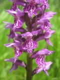 Травы (13)21–37(54) см высотой. Листья в числе 4–7(9), ланцетные до узколанцетных, обычно не загнутые, более-менее плоские, самые крупные (9.0)11.0–16.0(24.0) × (1.3)1.5–2.7(3.8) см, без пятен, редко со слабо выраженными пятнами. Максимальная ширина листа расположена посередине (отношение длины листа к положению максимальной ширины составляет (1.5)1.6–2.4(3.7)). Самый верхний лист (25)31–58(90) мм длиной, либо перекрывающий соцветие на 3(9) см, либо не доходящий до него, расстояние между его верхушкой и самым нижним цветком до 2(5) см. Стебель полый по крайней мере у основания; толщина стебля у основания (2.3)4.5–7.5(10.0) мм, под соцветием (1.8)2.6–4.0(6.0) мм. Соцветие 2.5–6.5(10.0) см длиной, (13)30–37(54)-цветковое. Нижний прицветник варьирующий, (18)20–30(45) мм длиной, узколанцетный. Завязь (6.5)7.2–9.5(12.0) мм длиной. Цветок от светло- до темно-фиолетового, губа и боковые лопасти с заметными более темными пятнами. Наружные доли околоцветника (5.8)7.0–9.0(10.0) мм длиной, более-менее широколанцетные, боковые лопасти (5.5)6.0–7.5(9.0) мм длиной, более-менее узкояйцевидные. Губа (5)6–8(9)×(6)7–9(11) мм, трёхлопастная, выемка между долями (0.5)1.0–2.0(2.6) мм глубиной. Боковые доли (0.7)1.5–2.5(3.8)×(1.8)2.5–3.5(4.0) мм, средние доли (1.3)2.1–3.6(4.8)×(1.5)2.2–3.2(3.8) мм. Шпорец (1)4–7(9) мм длиной, (0.8)1.4–2.1(2.6) мм толщиной в основании, обычно слабоизогнутый. 2n=80.