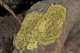 род Rhizocarpon. Таллом с апотециями на камне. Челябинская обл., хребет Уреньга, скальный гребень на подходе к вершине Второй сопки, ≈ 1100 м н.у.м. 16 сентября 2017 г.